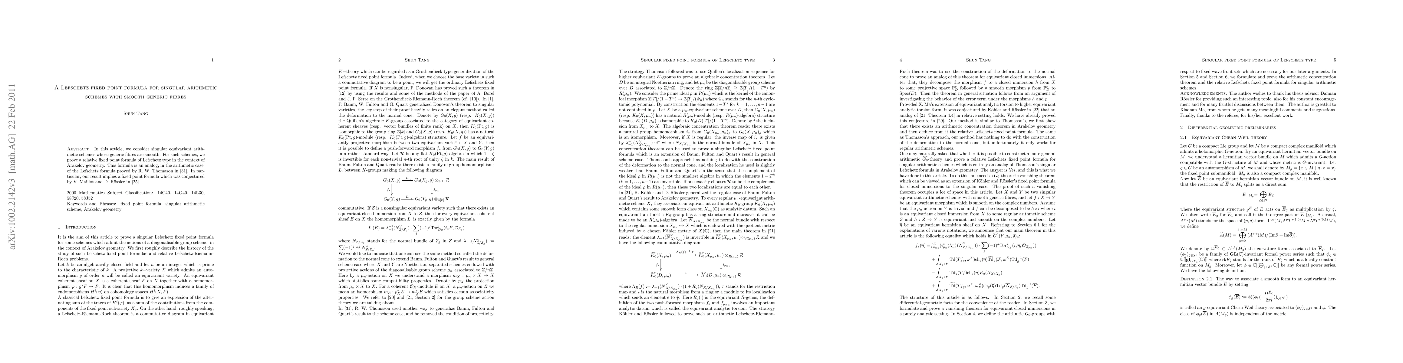 In this article, we consider singular equivariant arithmetic schemes whose generic fibres are smooth. For such schemes, we prove a relative fixed point formula of Lefschetz type in the context of Arakelov geometry. This formula is an analog, in the arithmetic case, of the Lefschetz formula proved by R. W. Thomason. In particular, our result implies a fixed point formula which was conjectured by V. Maillot and D. R\"{o}ssler.