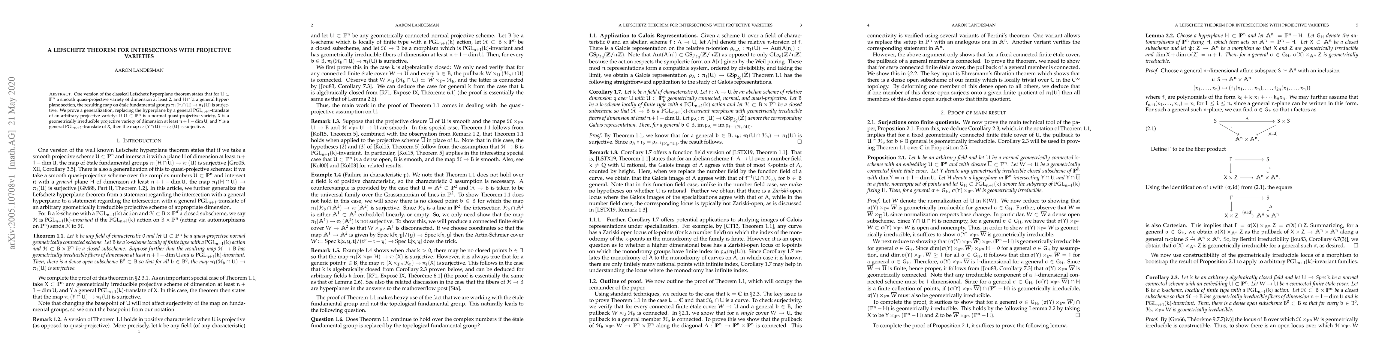 Researchers proved a generalized version of the Lefschetz hyperplane theorem for intersections with projective varieties, showing that specific map relationships hold true even when using general translates of an arbitrary projective variety.