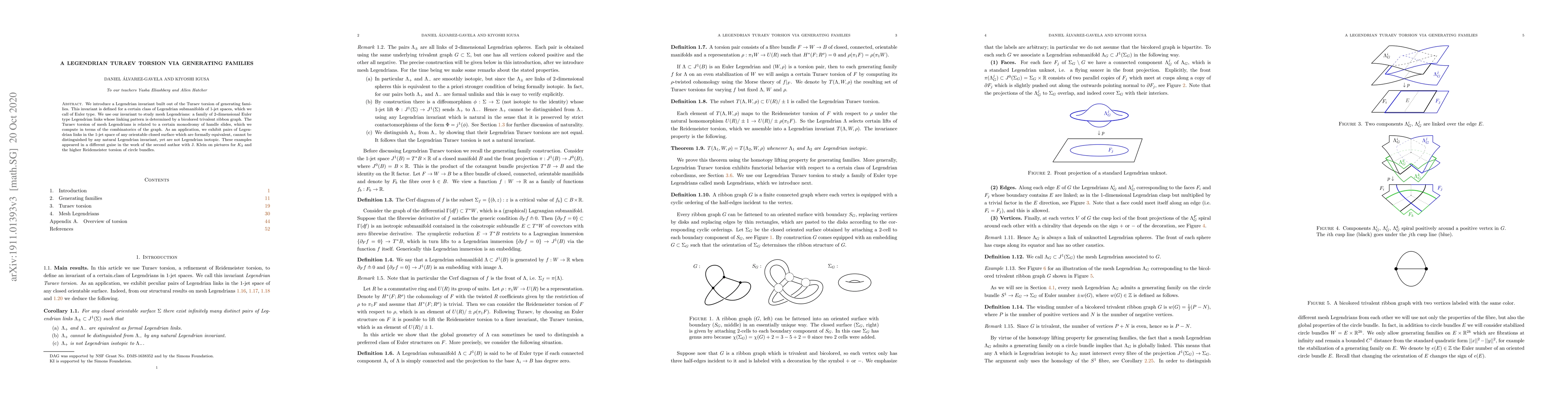 We introduce a Legendrian invariant built out of the Turaev torsion of generating families. This invariant is defined for a certain class of Legendrian submanifolds of 1-jet spaces, which we call of Euler type. We use our invariant to study mesh Legendrians: a family of 2-dimensional Euler type Legendrian links whose linking pattern is determined by a bicolored trivalent ribbon graph. The Turaev torsion of mesh Legendrians is related to a certain monodromy of handle slides, which we compute in terms of the combinatorics of the graph. As an application, we exhibit pairs of Legendrian links in the 1-jet space of any orientable closed surface which are formally equivalent, cannot be distinguished by any natural Legendrian invariant, yet are not Legendrian isotopic. These examples appeared in a different guise in the work of the second author with J. Klein on pictures for $K_3$ and the higher Reidemeister torsion of circle bundles.