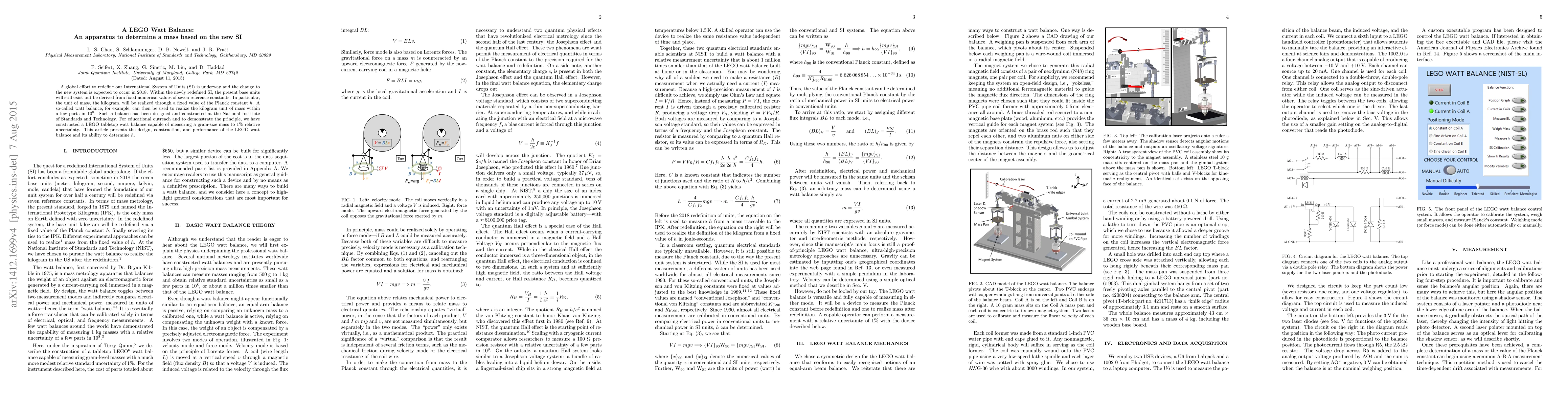 A global effort to redefine our International System of Units (SI) is underway and the change to the new system is expected to occur in 2018. Within the newly redefined SI, the present base units will still exist but be derived from fixed numerical values of seven reference constants. More specifically, the unit of mass, the kilogram, will be realized through a fixed value of the Planck constant $h$. For instance, a watt balance can be used to realize the kilogram unit of mass within a few parts in $10^8$. Such a balance has been designed and constructed at the National Institute of Standards and Technology. For educational outreach and to demonstrate the principle, we have constructed a LEGO tabletop watt balance capable of measuring a gram size mass to 1 % relative uncertainty. This article presents the design, construction, and performance of the LEGO watt balance and its ability to determine $h$