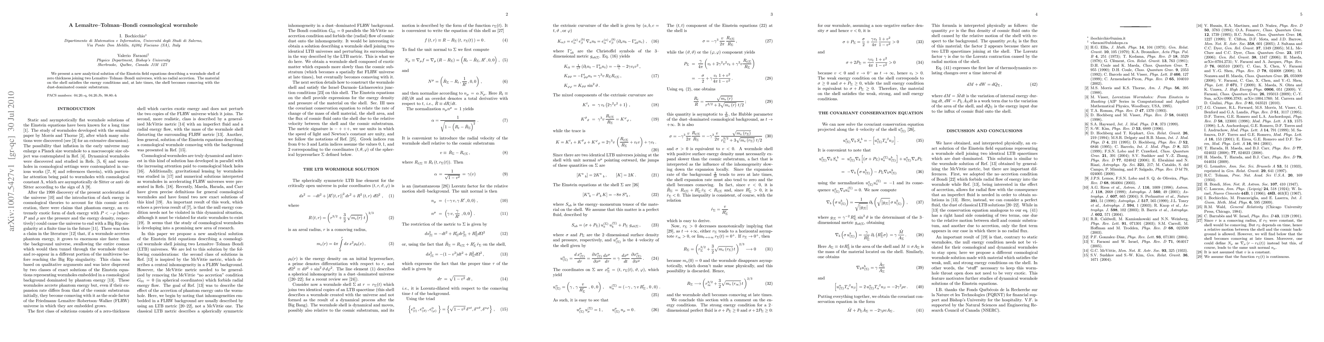 This paper introduces an analytical solution for a wormhole connecting two Lemaïtre-Tolman-Bondi universes, ensuring the shell adheres to energy conditions and aligns with the cosmic substratum at late times. The wormhole features no radial accretion.