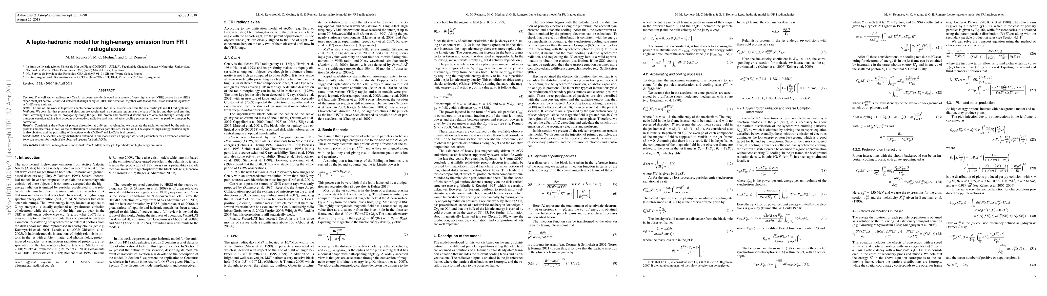 This paper proposes a lepto-hadronic model to explain the very high energy gamma-ray emission from FR I radiogalaxies, specifically focusing on Cen A and M87. The model considers the acceleration and cooling of protons and electrons in the relativistic jets, predicting the resulting multi-wavelength radiation and high-energy neutrino signal, with potential detection prospects discussed for KM3Net and IceCube.
