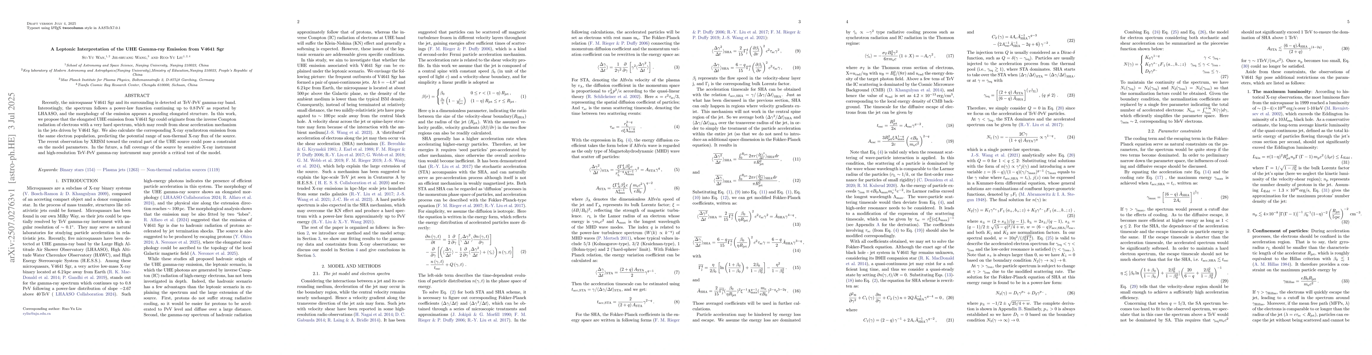 The paper proposes that the elongated ultra-high-energy (UHE) gamma-ray emission from the microquasar V4641 Sgr results from inverse Compton radiation of electrons with a hard spectrum, accelerated via a shear mechanism in jets. It also predicts the range of non-thermal X-ray flux from the same electron population, suggesting future X-ray and TeV-PeV gamma-ray observations can validate this model.