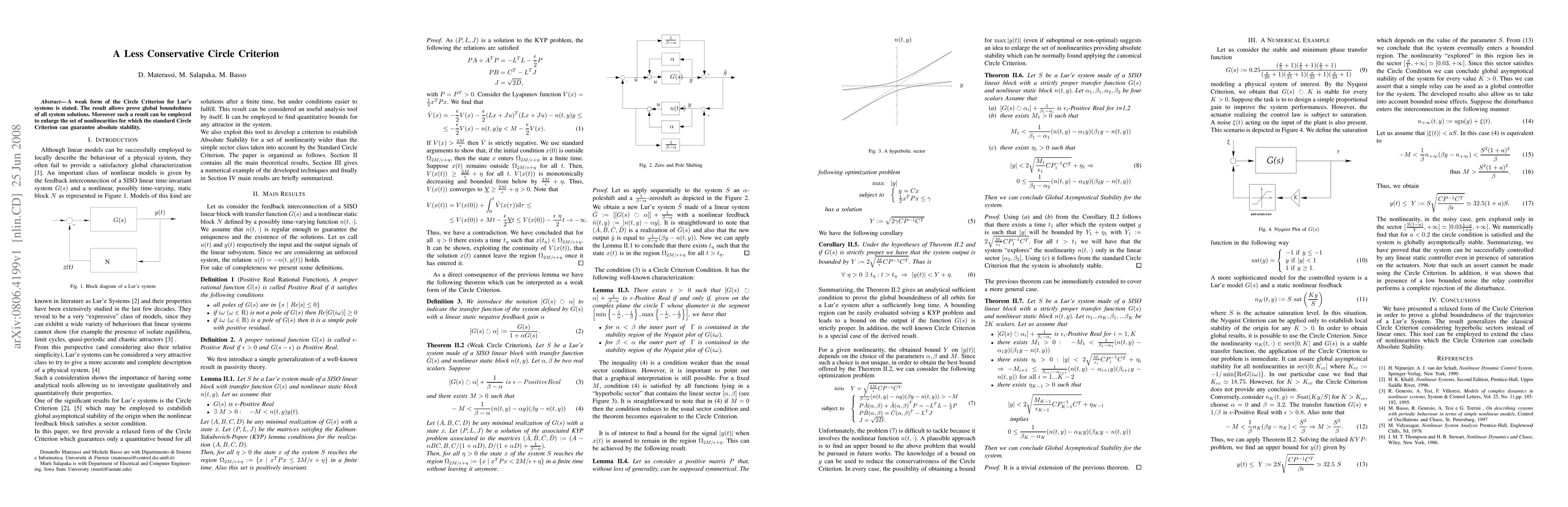 This paper proposes a less conservative version of the Circle Criterion for Lur'e systems, enabling the proof of global boundedness of all system solutions. It also extends the applicability of the standard Circle Criterion to a wider range of nonlinearities, thereby ensuring absolute stability.