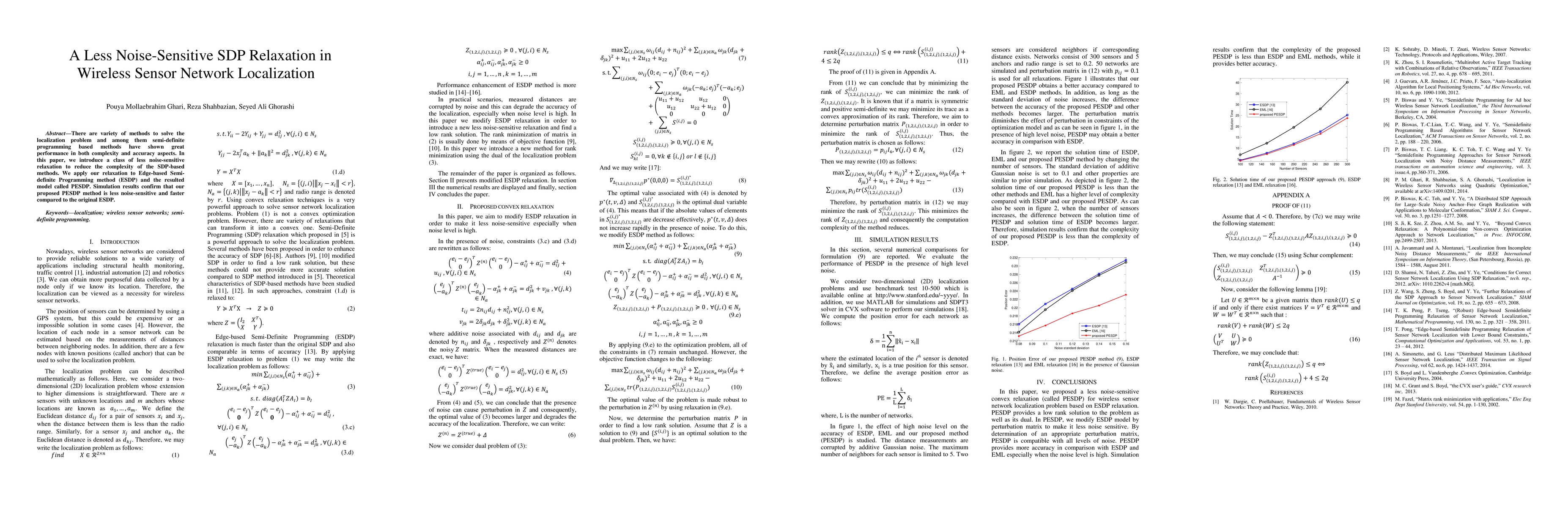 This paper proposes a less noise-sensitive relaxation for the Edge-based Semi-Definite Programming (ESDP) method to improve localization in wireless sensor networks. The new PESDP model is shown to be both faster and more robust to noise compared to the original ESDP method.