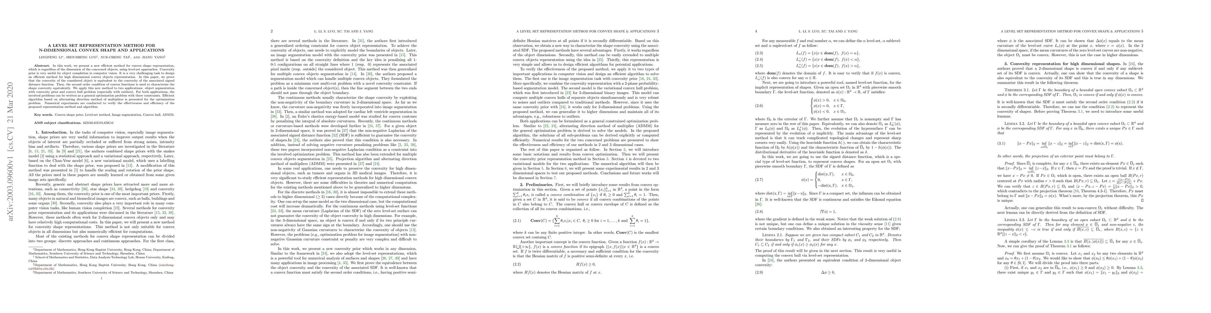 This paper introduces a new level-set method for representing N-dimensional convex shapes, leveraging the equivalence between object convexity and the convexity of the associated signed distance function. The method is applied to object segmentation and convex hull problems, with an efficient optimization algorithm based on the alternating direction method of multipliers.
