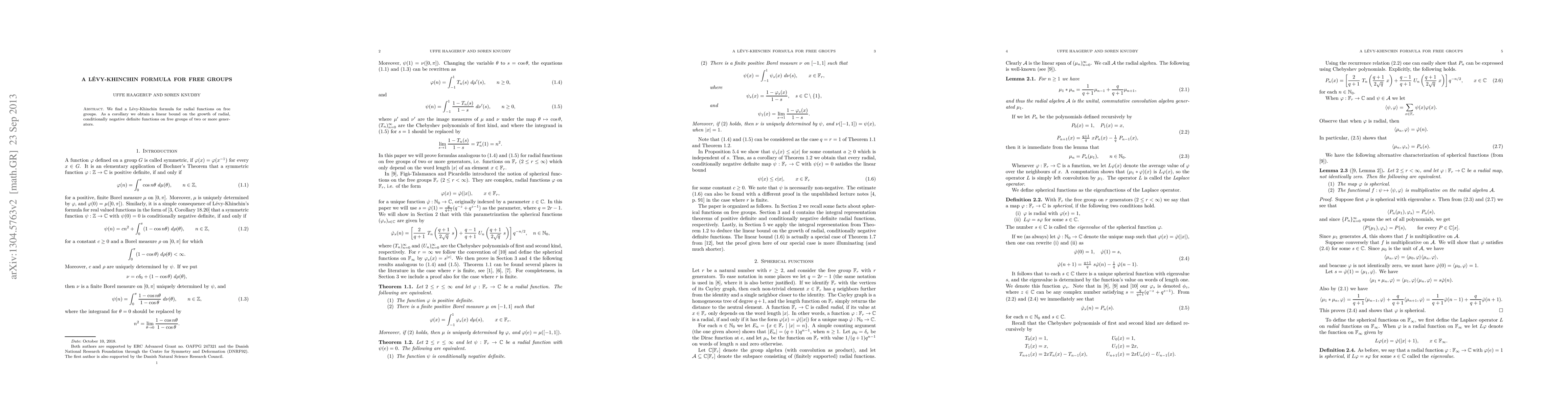 We find a L\'evy-Khinchin formula for radial functions on free groups. As a corollary we obtain a linear bound on the growth of radial, conditionally negative definite functions on free groups of two or more generators.