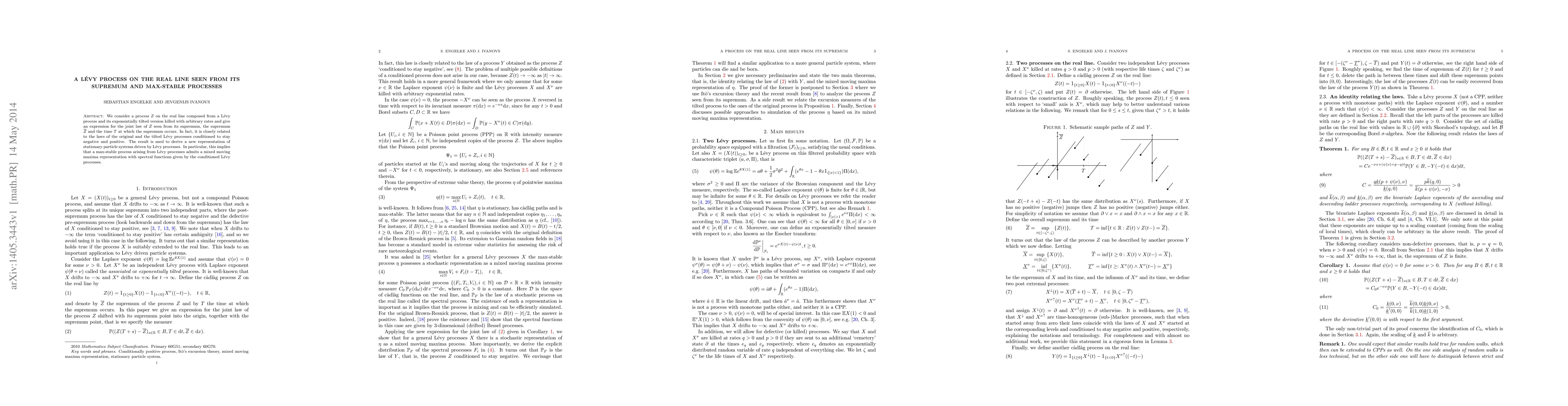 This paper derives the joint law of a Lévy process and its exponentially tilted version, focusing on their supremum and the time at which it occurs. It introduces a new representation for max-stable processes driven by Lévy processes, showing they can be expressed using conditioned Lévy processes.