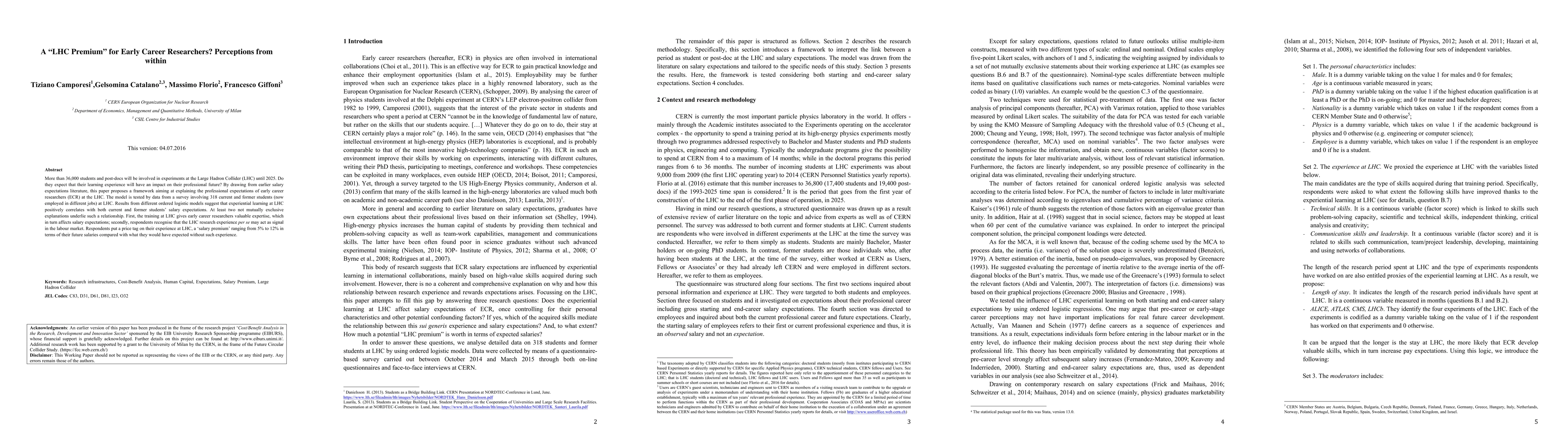 More than 36,000 students and post-docs will be involved in experiments at the Large Hadron Collider (LHC) until 2025. Do they expect that their learning experience will have an impact on their professional future? By drawing from earlier salary expectations literature, this paper proposes a framework aiming at explaining the professional expectations of early career researchers (ECR) at the LHC. Results from different ordered logistic models suggest that experiential learning at LHC positively correlates with both current and former students' salary expectations. At least two not mutually exclusive explanations underlie such a relationship. First, the training at LHC gives early career researchers valuable expertise, which in turn affects salary expectations; secondly, respondents recognise that the LHC research experience per se may act as a signal in the labour market. Respondents put a price tag on their experience at LHC, a "salary premium" ranging from 5% to 12% in terms of future salaries compared with what they would have expected without such experience.