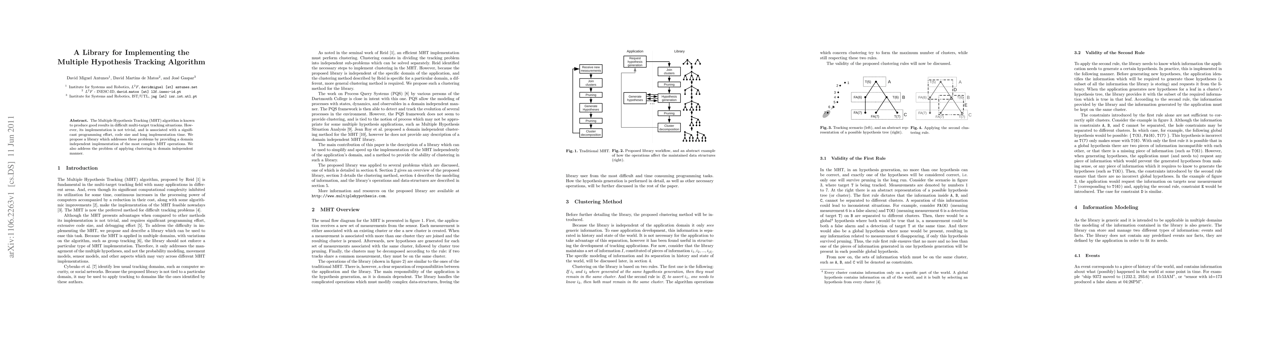 This paper introduces a library designed to simplify the implementation of the Multiple Hypothesis Tracking (MHT) algorithm, reducing programming effort, code size, and implementation time by providing a domain-independent implementation of its complex operations and clustering methods.