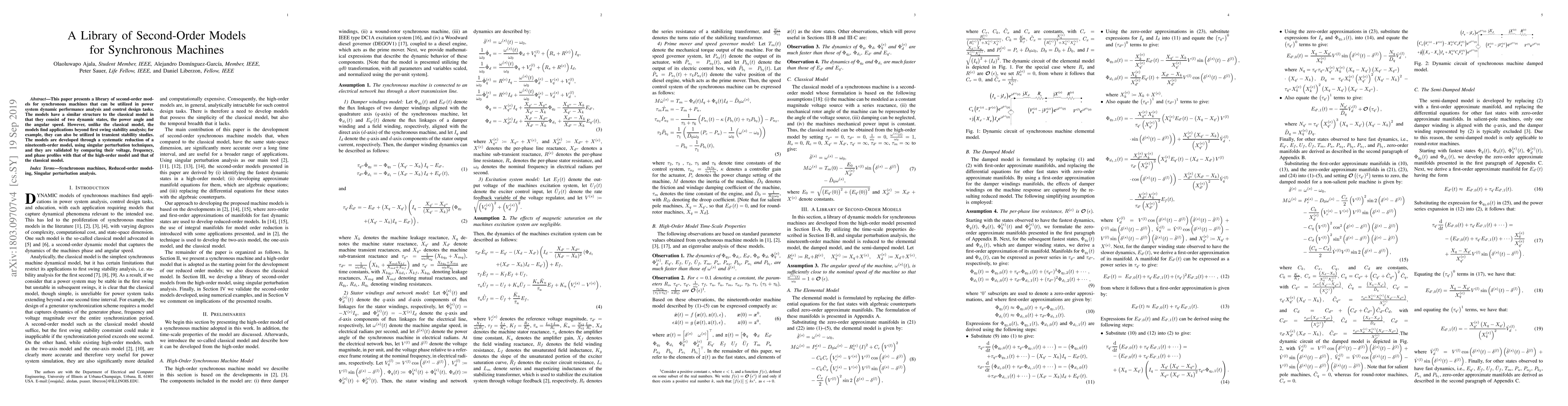 This paper introduces a library of simplified models for synchronous machines, allowing for more efficient analysis and control design in power systems. The models are derived from a high-order model using singular perturbation techniques and validated against the original model and classical model.