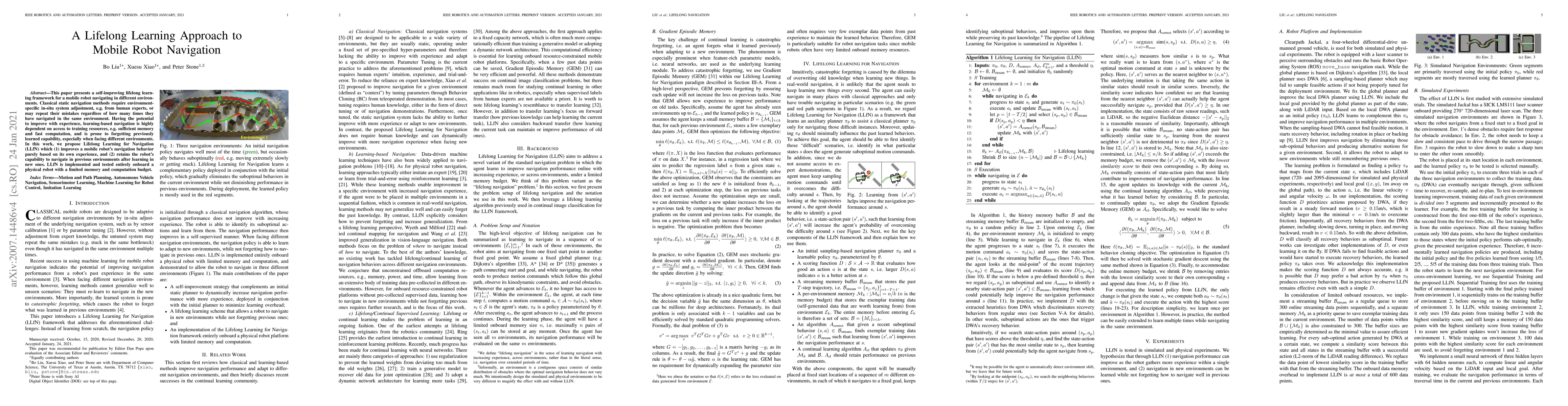 This paper introduces a lifelong learning framework, LLfN, for mobile robot navigation that enhances navigation skills through self-experience and retains capabilities across different environments without external adjustments. The approach is implemented on a physical robot with limited computational resources.
