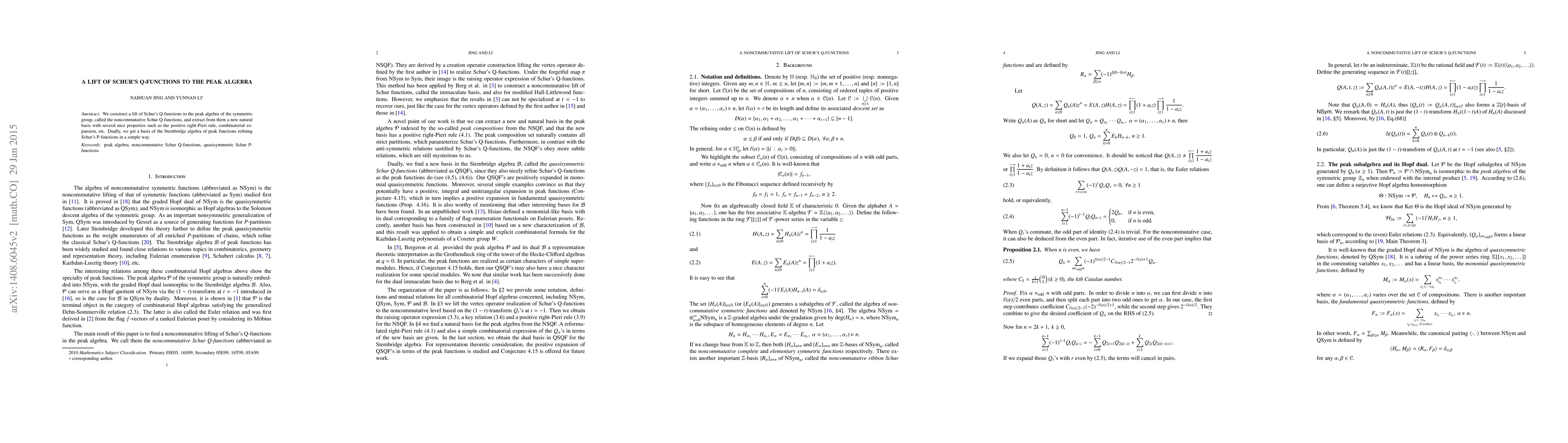 The introduction and detailed analysis of noncommutative Schur Q-functions (NSQFs) as a lift of Schur's Q-functions to the peak algebra, along with their combinatorial properties and refinement of Schur's P-functions.