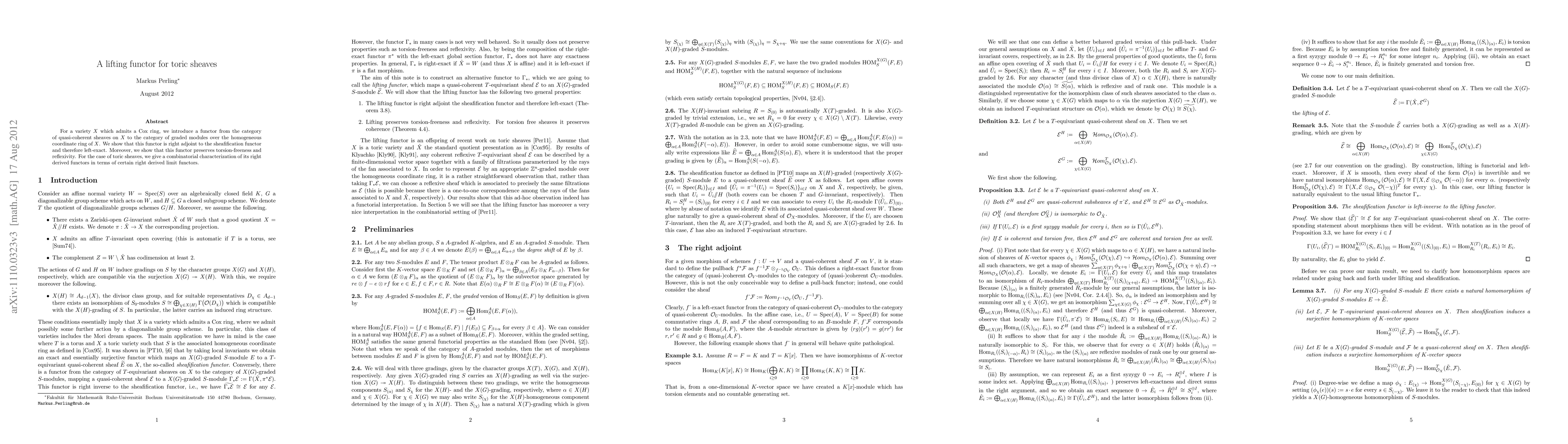 Researchers introduce a lifting functor for toric sheaves, showing it preserves torsion-freeness, reflexivity, and is left-exact, with implications for understanding right-derived functors of toric sheaves.