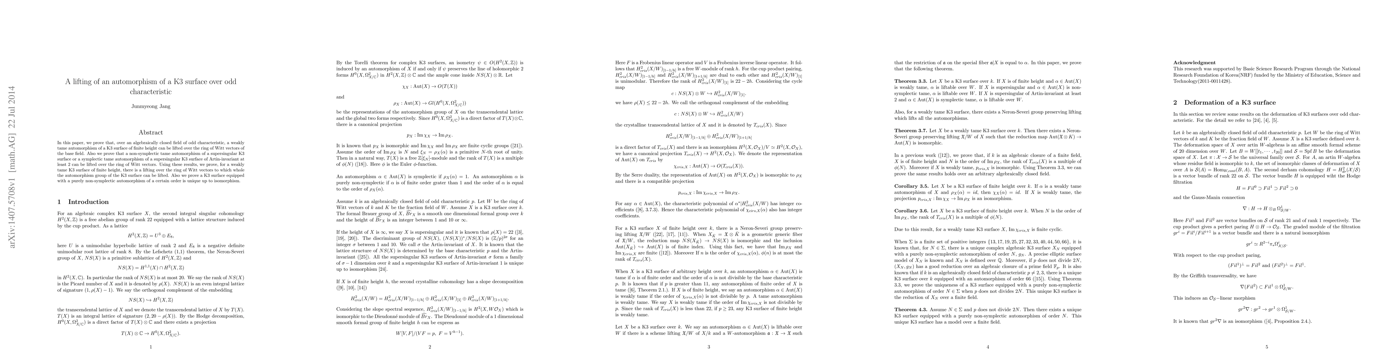This paper demonstrates the lifting of specific types of automorphisms of K3 surfaces over algebraically closed fields of odd characteristic to the ring of Witt vectors. It shows that weakly tame automorphisms of K3 surfaces of finite height, as well as non-symplectic and symplectic tame automorphisms under certain conditions, can be lifted, leading to the conclusion that the entire automorphism group of a weakly tame K3 surface can be lifted, and surfaces with certain purely non-symplectic automorphisms are unique up to isomorphism.
