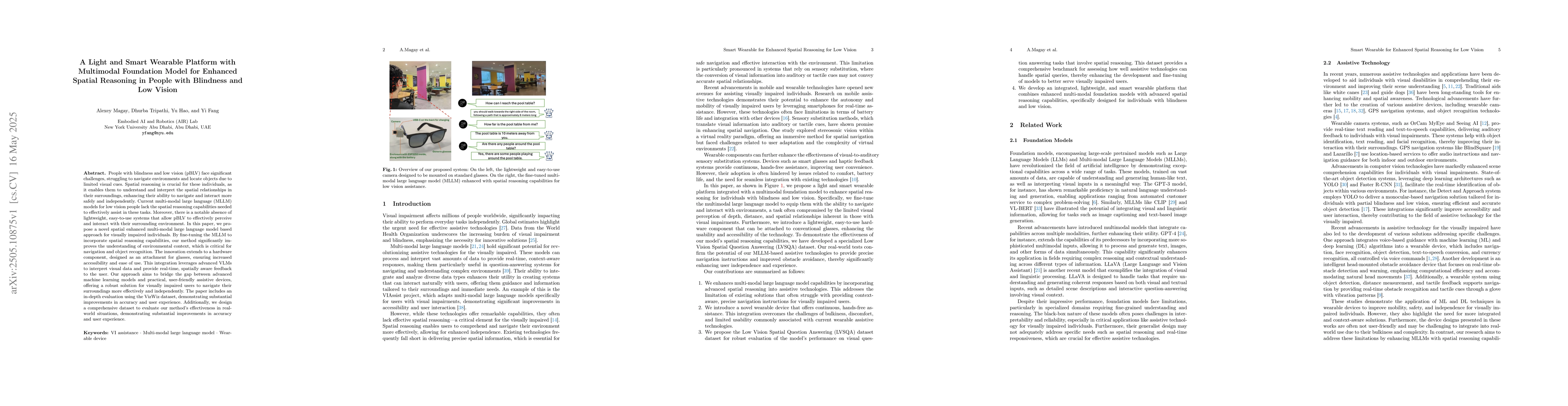 The development of a spatial-aware multi-modal large language model integrated with a lightweight wearable hardware solution.