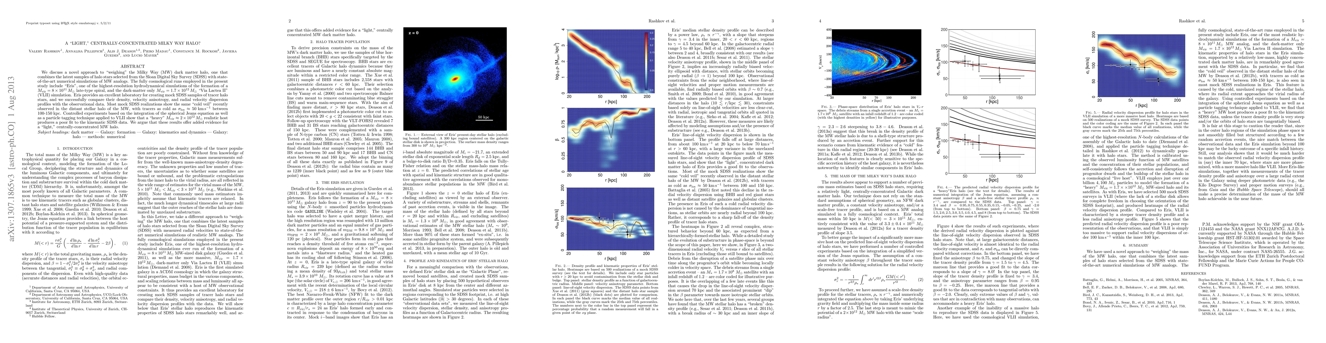 We discuss a novel approach to "weighing" the Milky Way dark matter halo, one that combines the latest samples of halo stars selected from the Sloan Digital Sky Survey (SDSS) with state-of-the-art numerical simulations of Milky Way analogs. The fully cosmological runs employed in the present study include "Eris", one of the highest-resolution hydrodynamical simulations of the formation of a M_vir=8e11 M_sun late-type spiral, and the dark-matter only M_vir=1.7e12 M_sun "Via Lactea II" simulation. Eris provides an excellent laboratory for creating mock SDSS samples of tracer halo stars, and we successfully compare their density, velocity anisotropy, and radial velocity dispersion profiles with the observational data. Most mock SDSS realizations show the same "cold veil" recently observed in the distant stellar halo of the Milky Way, with tracers as cold as sigma_los ~ 50 km/s between 100-150 kpc. Controlled experiments based on the integration of the spherical Jeans equation as well as a particle tagging technique applied to Via Lactea II show that a "heavy" M_vir 2e12 M_sun realistic host produces a poor fit to the kinematic SDSS data. We argue that these results offer added evidence for a "light," centrally-concentrated Milky Way halo.