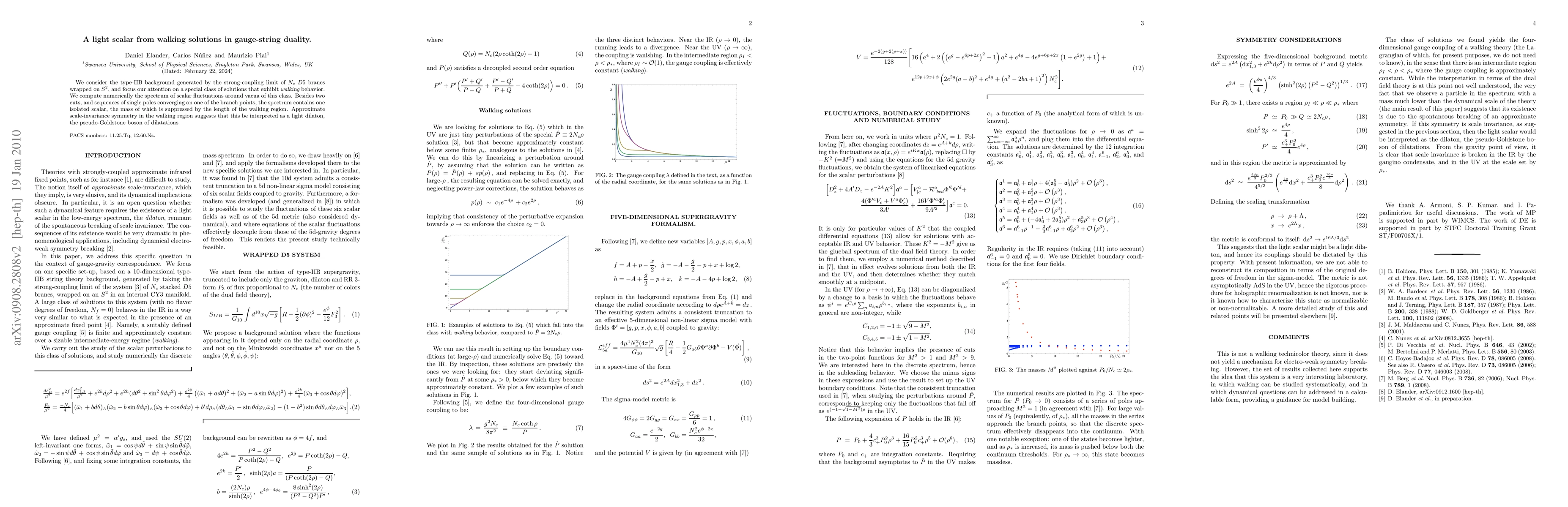 Researchers found a light scalar in solutions to gauge-string duality that behaves like a dilaton, a pseudo-Goldstone boson of dilatations, in the walking region.