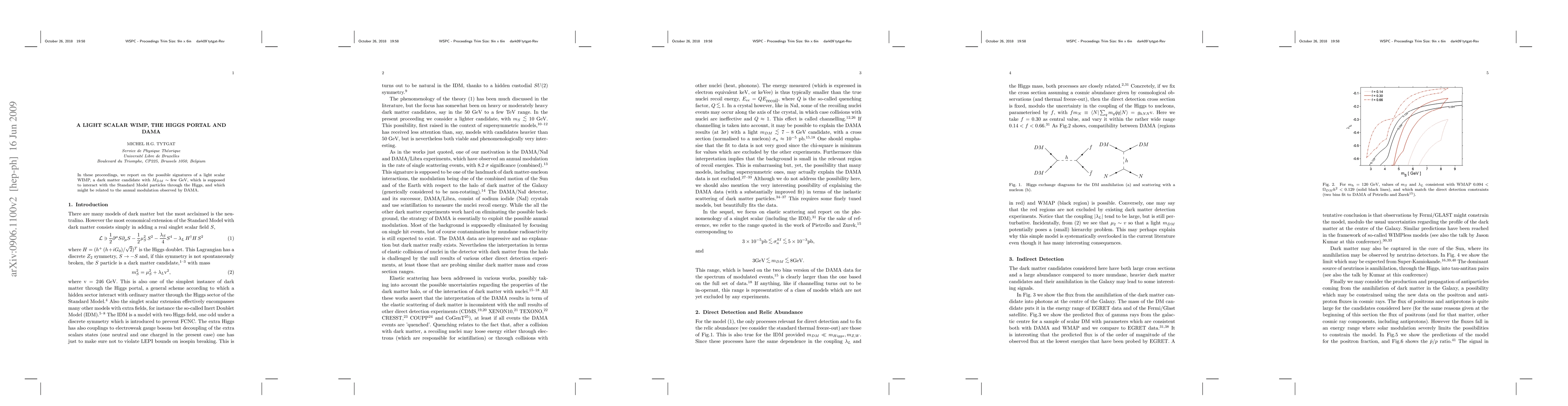 Summary: This paper explores the potential signatures of a light scalar Weakly Interacting Massive Particle (WIMP) as a dark matter candidate, suggesting it could interact via the Higgs portal and potentially explain the annual modulation observed in DAMA experiments.