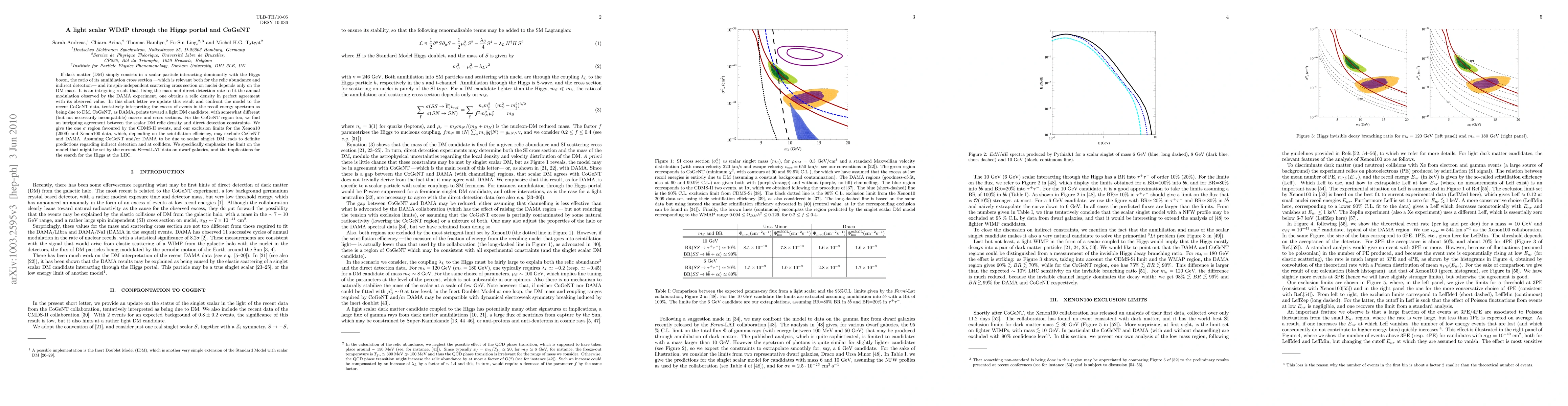 This paper explores a light scalar Weakly Interacting Massive Particle (WIMP) through the Higgs portal, focusing on its implications for dark matter (DM) and its interaction with the Higgs boson. It updates the model to fit the CoGeNT data, suggesting the excess events could be due to DM, and finds agreement between the relic density and direct detection constraints, while discussing potential exclusions from the Xenon10 and Xenon100 experiments.