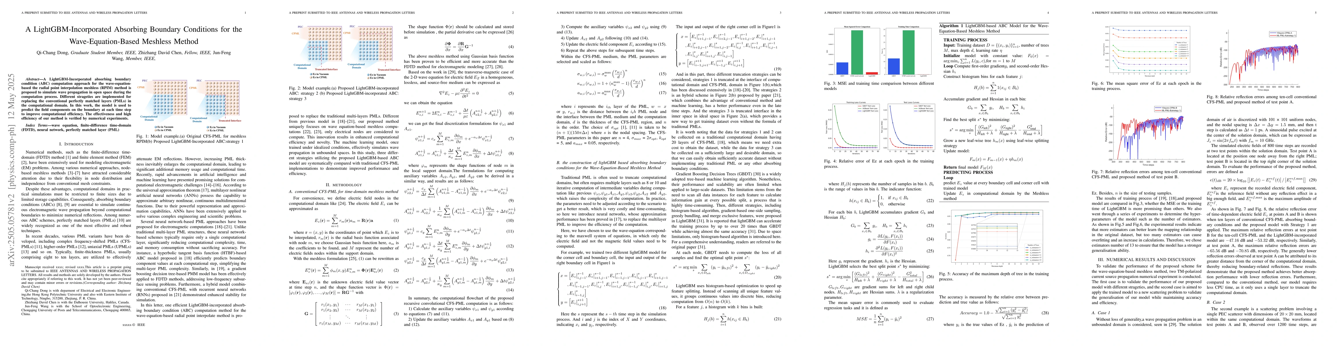 This work stands out by utilizing machine learning (LightGBM) to enhance traditional meshless methods, offering a novel approach to absorbing boundary conditions.