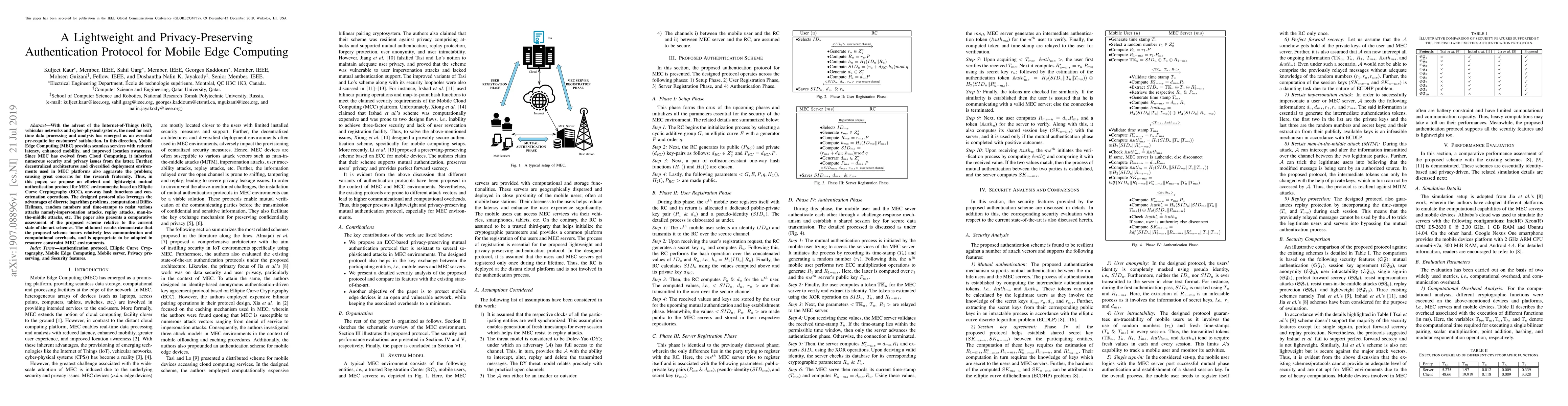 This paper proposes a lightweight mutual authentication protocol for Mobile Edge Computing (MEC) environments, leveraging Elliptic Curve Cryptography (ECC) to address security and privacy concerns. The protocol effectively resists various attacks and demonstrates lower communication and computational overheads compared to existing schemes.