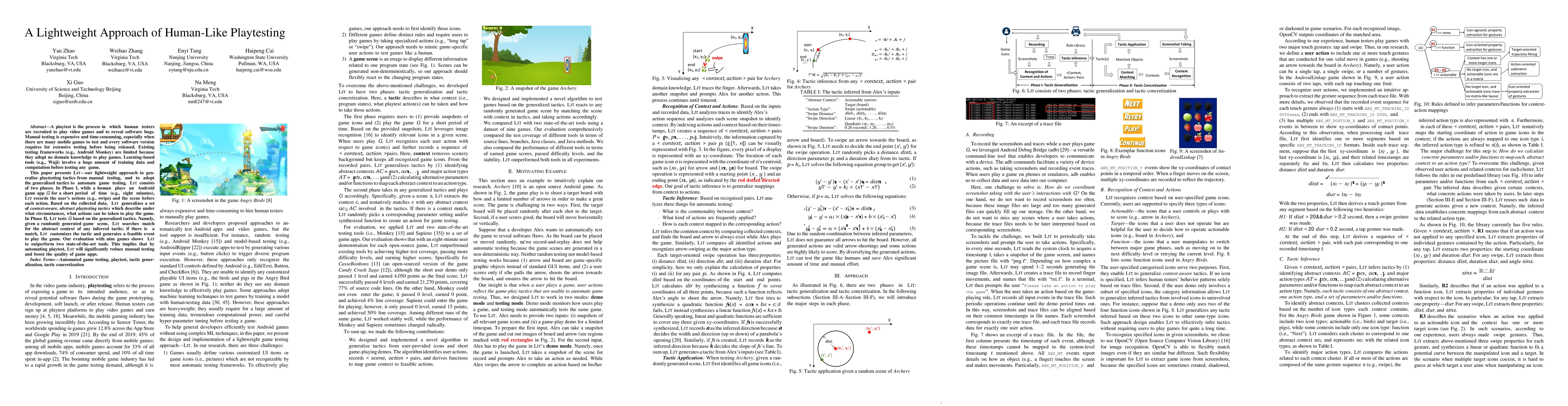 A playtest is the process in which human testers are recruited to play video games and to reveal software bugs. Manual testing is expensive and time-consuming, especially when there are many mobile games to test and every software version requires for extensive testing before being released. Existing testing frameworks (e.g., Android Monkey) are limited because they adopt no domain knowledge to play games. Learning-based tools (e.g., Wuji) involve a huge amount of training data and computation before testing any game. This paper presents LIT -- our lightweight approach to generalize playtesting tactics from manual testing, and to adopt the generalized tactics to automate game testing. LIT consists of two phases. In Phase I, while a human plays an Android game app G for a short period of time (e.g., eight minutes), \tool records the user's actions (e.g., swipe) and the scene before each action. Based on the collected data, LIT generalizes a set of \emph{context-aware, abstract playtesting tactics} which describe under what circumstances, what actions can be taken to play the game. In Phase II, LIT tests G based on the generalized tactics. Namely, given a randomly generated game scene, LIT searches match for the abstract context of any inferred tactic; if there is a match, LIT customizes the tactic and generates a feasible event to play the game. Our evaluation with nine games shows LIT to outperform two state-of-the-art tools. This implies that by automating playtest, LIT will significantly reduce manual testing and boost the quality of game apps.