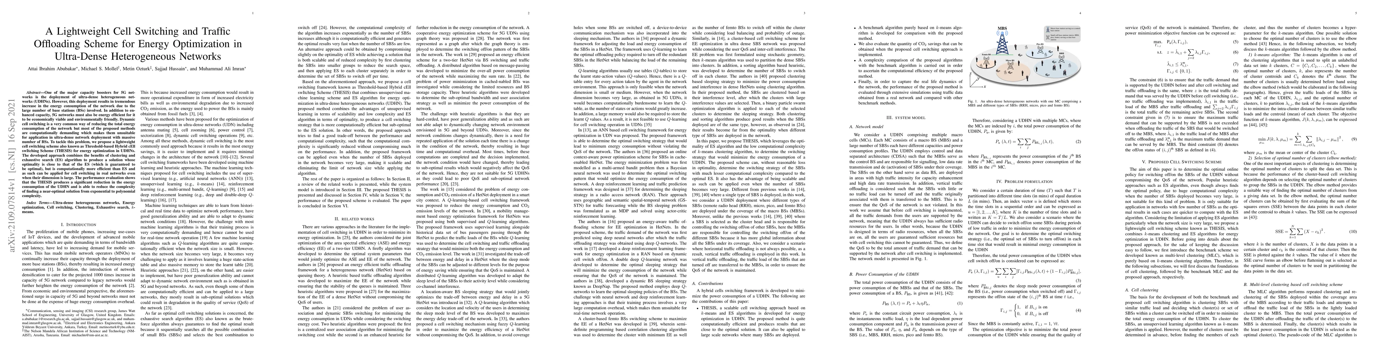 This paper proposes a lightweight cell switching scheme called THESIS to optimize energy consumption in ultra-dense heterogeneous networks (UDHNs). THESIS combines clustering and an efficient search algorithm to achieve near-optimal energy savings while significantly reducing computational complexity.