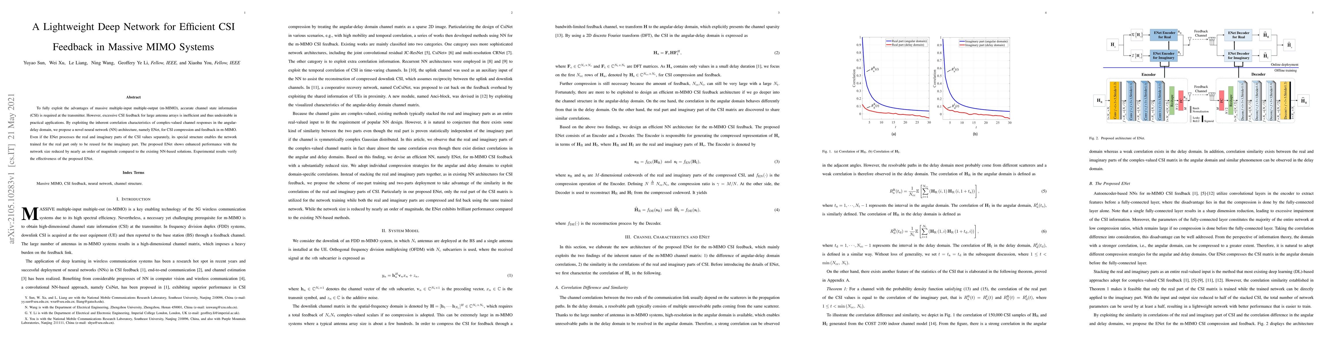 This paper proposes ENet, a lightweight deep neural network architecture for efficient CSI feedback in massive MIMO systems, leveraging inherent correlation in channel responses to reduce network size by nearly an order of magnitude. Experimental results demonstrate ENet's enhanced performance compared to existing solutions.