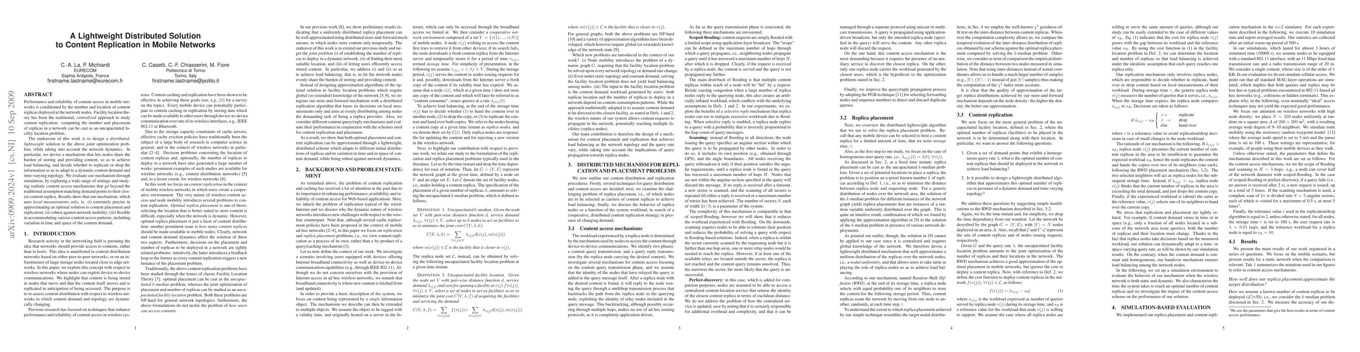 This paper proposes a lightweight, distributed mechanism for optimizing content replication in mobile networks, focusing on load balancing and dynamic adaptation to varying content demand and network topology. Simulation results demonstrate the method's precision, robustness against mobility, and flexibility in accommodating diverse content access patterns.
