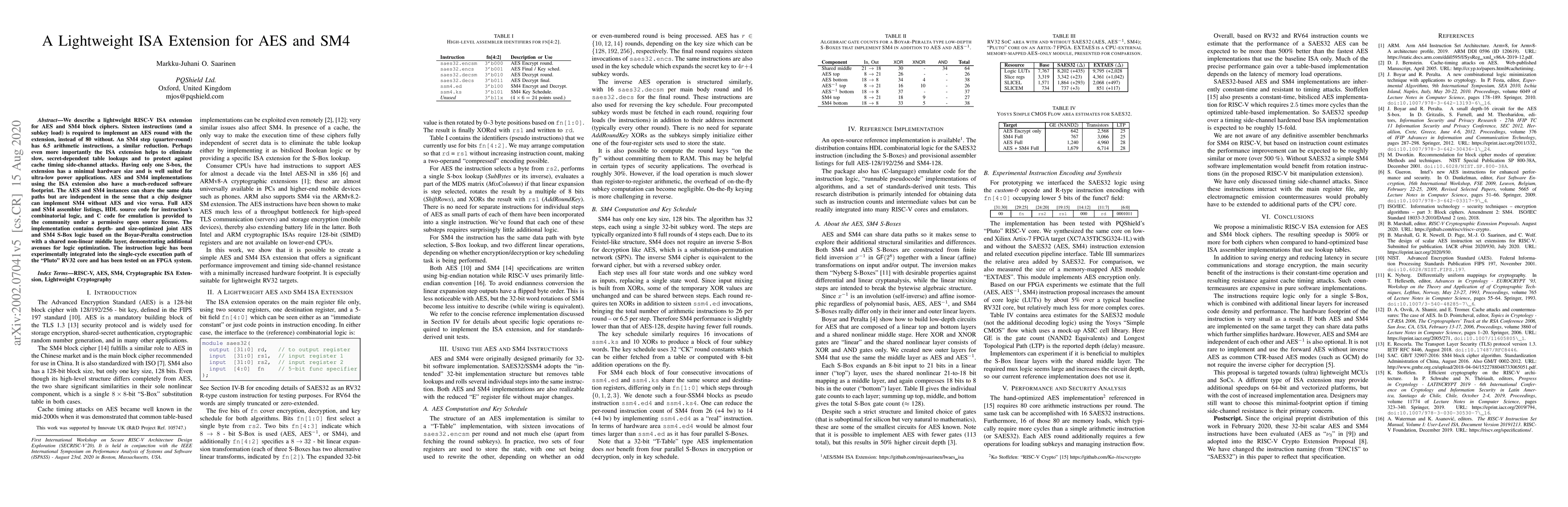 This paper proposes a lightweight RISC-V ISA extension for AES and SM4 block ciphers, significantly reducing the number of instructions required and minimizing hardware size. The extension facilitates efficient implementation with reduced software footprint and enhanced security against side-channel attacks, making it ideal for ultra-low power applications.