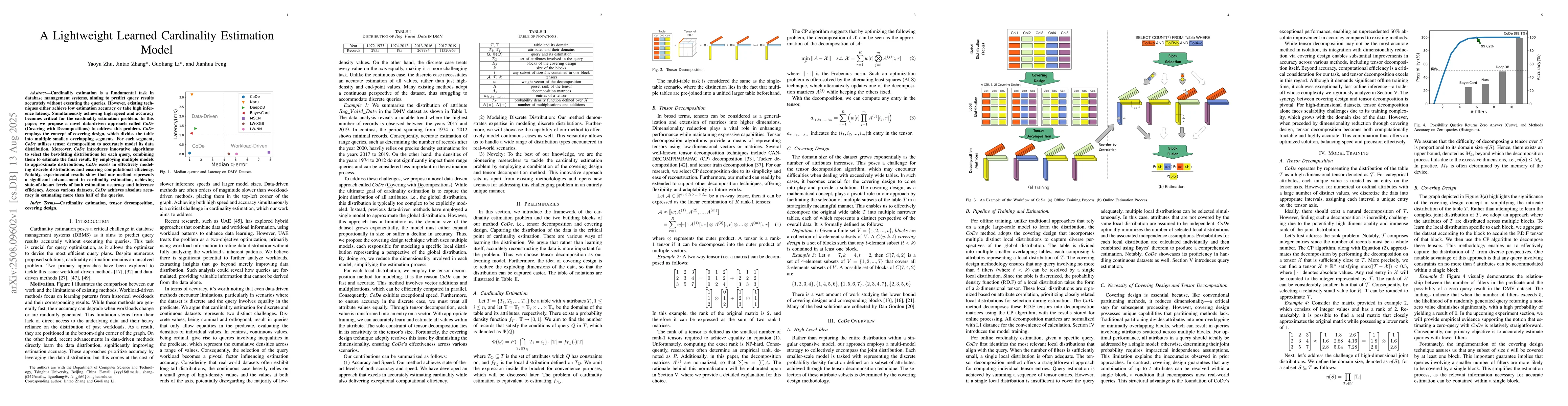 Cardinality estimation is a fundamental task in database management systems, aiming to predict query results accurately without executing the queries. However, existing techniques either achieve low estimation accuracy or incur high inference latency. Simultaneously achieving high speed and accuracy becomes critical for the cardinality estimation problem. In this paper, we propose a novel data-driven approach called CoDe (Covering with Decompositions) to address this problem. CoDe employs the concept of covering design, which divides the table into multiple smaller, overlapping segments. For each segment, CoDe utilizes tensor decomposition to accurately model its data distribution. Moreover, CoDe introduces innovative algorithms to select the best-fitting distributions for each query, combining them to estimate the final result. By employing multiple models to approximate distributions, CoDe excels in effectively modeling discrete distributions and ensuring computational efficiency. Notably, experimental results show that our method represents a significant advancement in cardinality estimation, achieving state-of-the-art levels of both estimation accuracy and inference efficiency. Across various datasets, CoDe achieves absolute accuracy in estimating more than half of the queries.