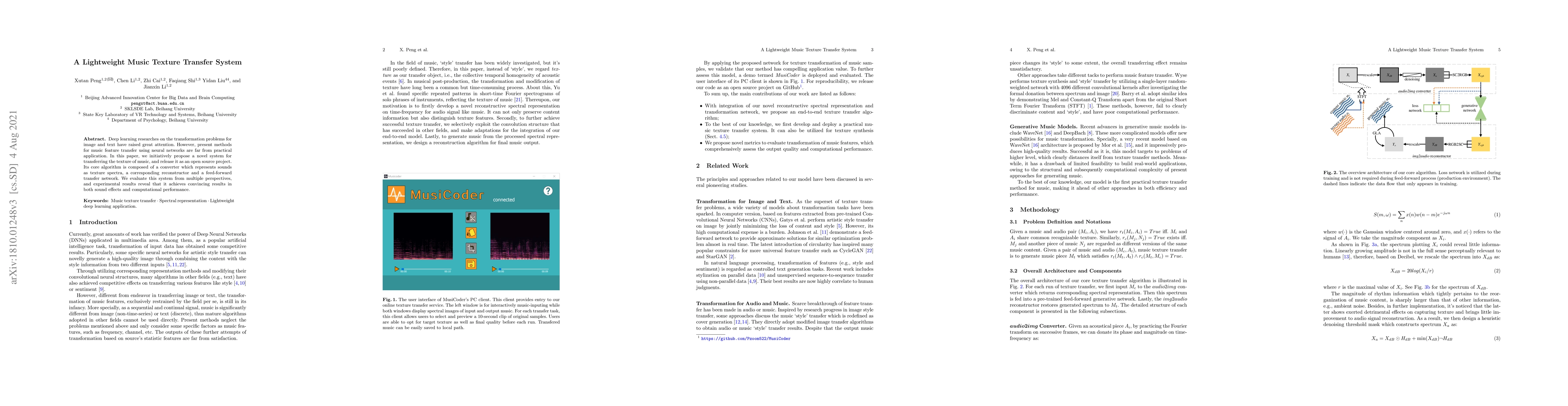 This paper presents a novel lightweight system for transferring music texture using deep learning, featuring a sound-to-texture converter, a reconstructor, and a feed-forward transfer network. It achieves effective sound effects and good computational performance, as demonstrated by the evaluation.