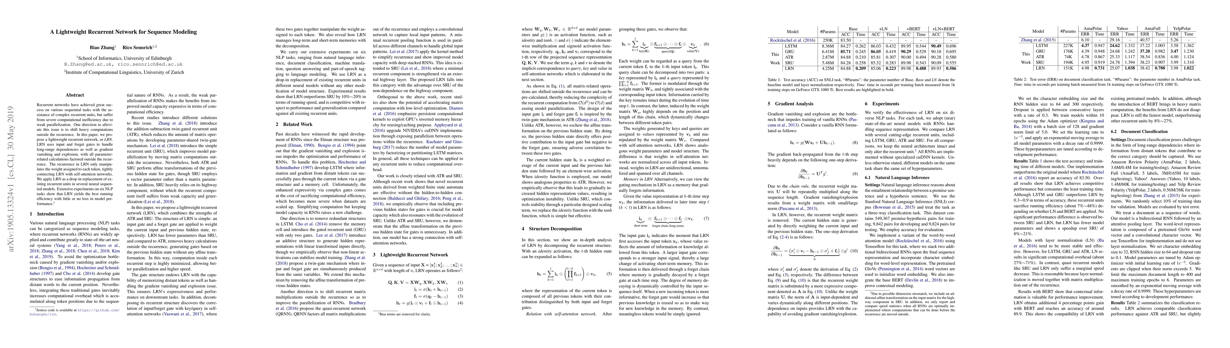 Researchers proposed a lightweight recurrent network called LRN that improves sequential tasks' performance while reducing computational inefficiency. Extensive experiments show that LRN achieves the best running efficiency with little or no loss in model performance on six NLP tasks.