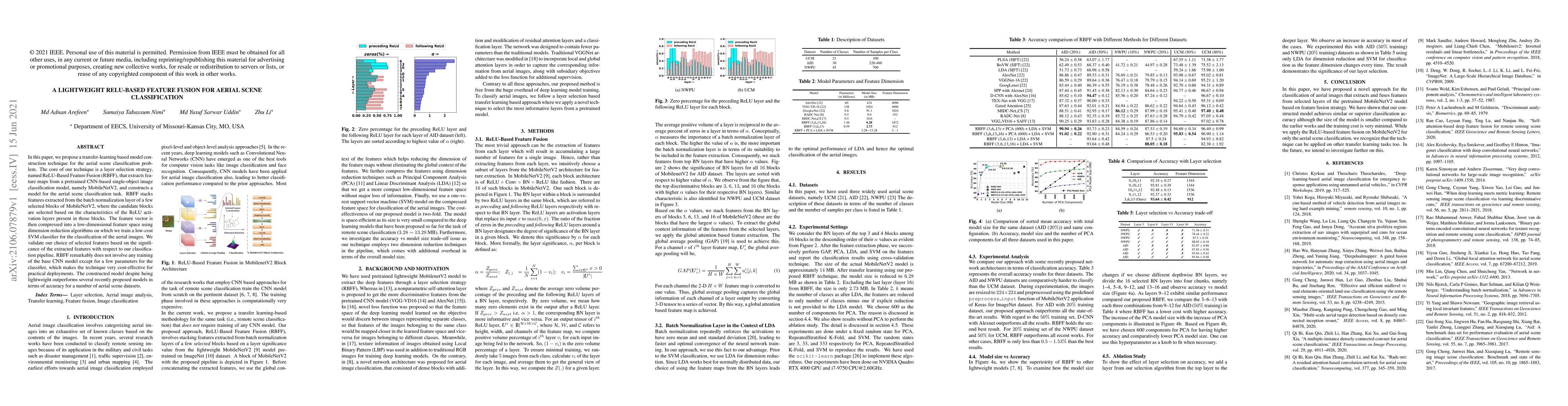 This paper introduces a lightweight transfer-learning model for aerial scene classification using a ReLU-Based Feature Fusion (RBFF) technique that extracts and fuses features from selected blocks of MobileNetV2, followed by SVM classification, achieving high accuracy without training the base CNN model.