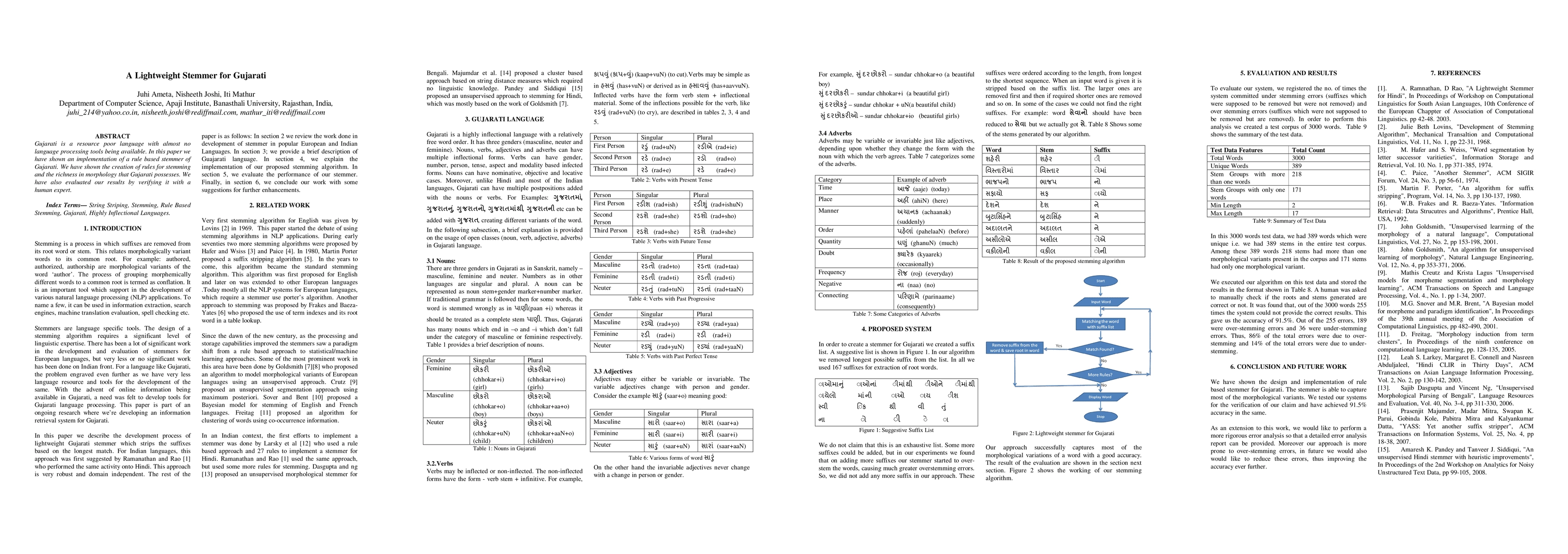 This paper presents a rule-based stemmer for the resource-poor Gujarati language, demonstrating the creation of stemming rules and evaluating the results with a human expert. The work highlights the morphological richness of Gujarati and addresses the lack of language processing tools.