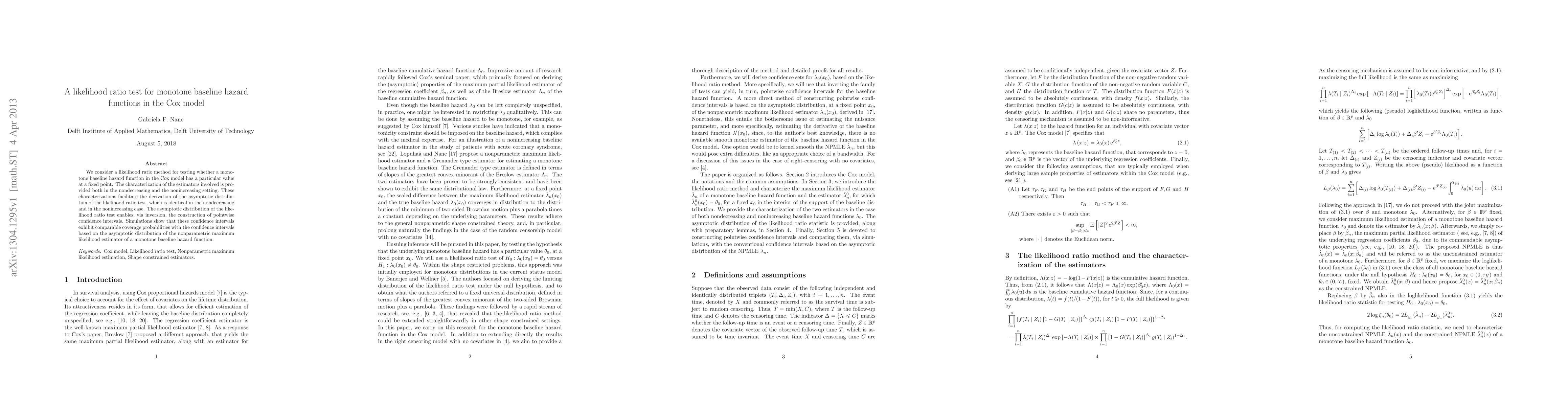 This paper presents a likelihood ratio test for assessing specific values of monotone baseline hazard functions in the Cox model, providing characterizations for both nondecreasing and nonincreasing settings. The derived asymptotic distribution of the test facilitates the construction of pointwise confidence intervals, which show comparable coverage probabilities to those based on the nonparametric maximum likelihood estimator.