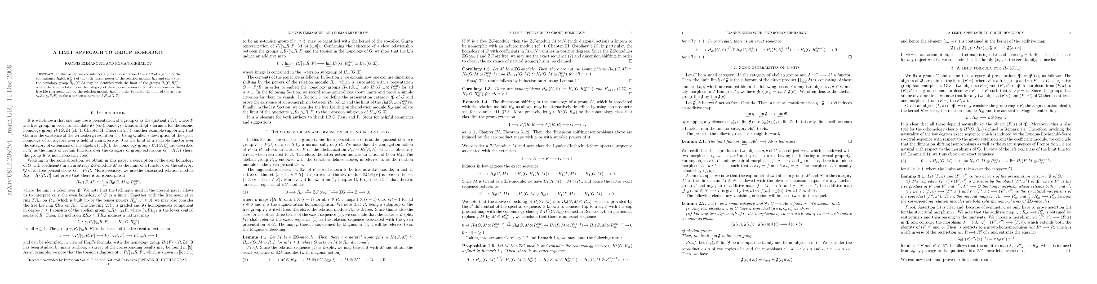 In this paper, we consider for any free presentation $G = F/R$ of a group $G$ the coinvariance $H_{0}(G,R_{ab}^{\otimes n})$ of the $n$-th tensor power of the relation module $R_{ab}$ and show that the homology group $H_{2n}(G,{\mathbb Z})$ may be identified with the limit of the groups $H_{0}(G,R_{ab}^{\otimes n})$, where the limit is taken over the category of these presentations of $G$. We also consider the free Lie ring generated by the relation module $R_{ab}$, in order to relate the limit of the groups $\gamma_{n}R/[\gamma_{n}R,F]$ to the $n$-torsion subgroup of $H_{2n}(G,{\mathbb Z})$.