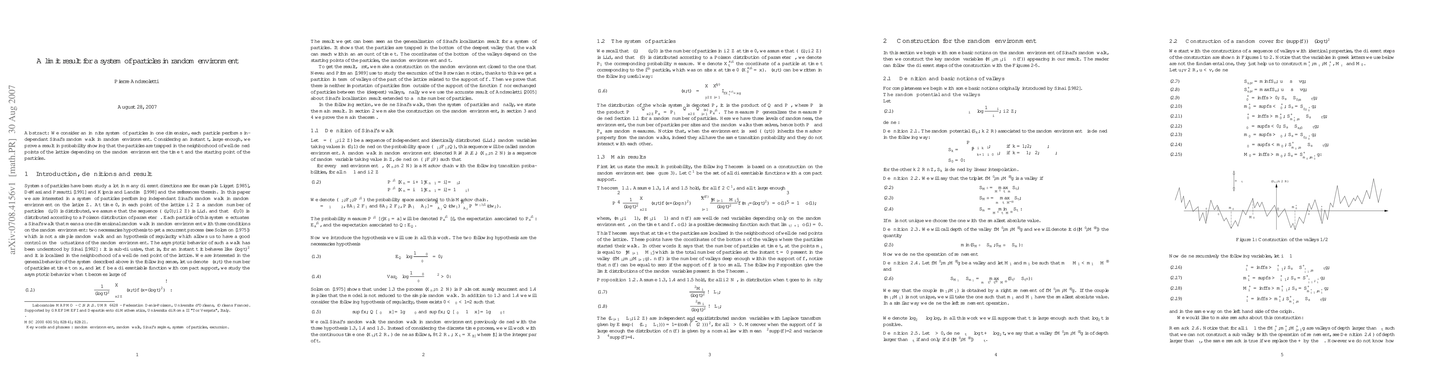We consider an infinite system of particles in one dimension, each particle performs independant Sinai's random walk in random environment. Considering an instant $t$, large enough, we prove a result in probability showing that the particles are trapped in the neighborhood of well defined points of the lattice depending on the random environment the time $t$ and the starting point of the particles.