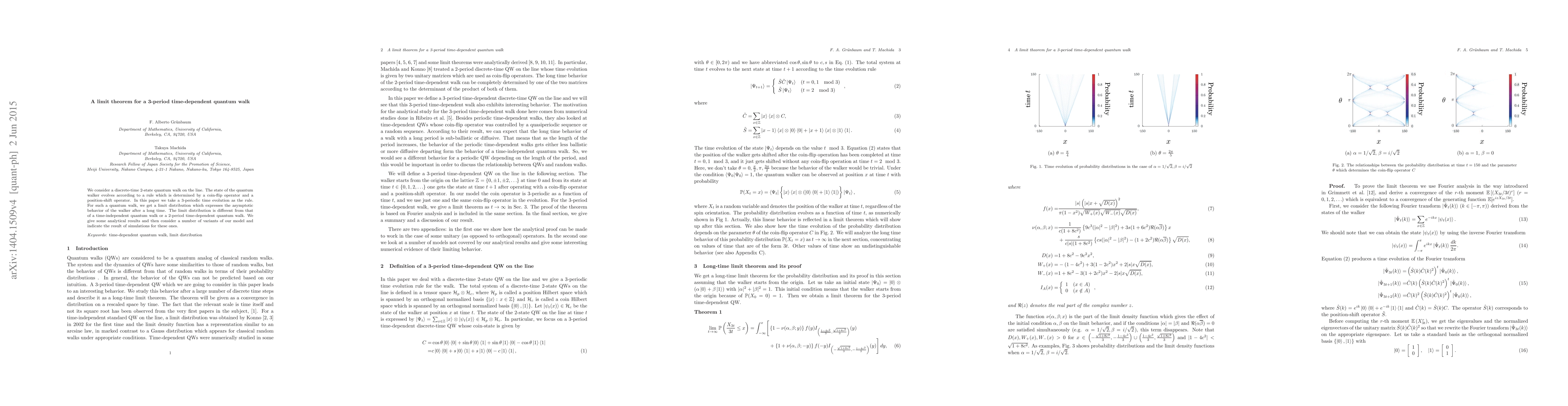 Researchers explore a 3-period time-dependent quantum walk and find that its limit distribution shows distinct asymptotic behavior compared to simpler models, offering new insights into the dynamics of quantum systems.
