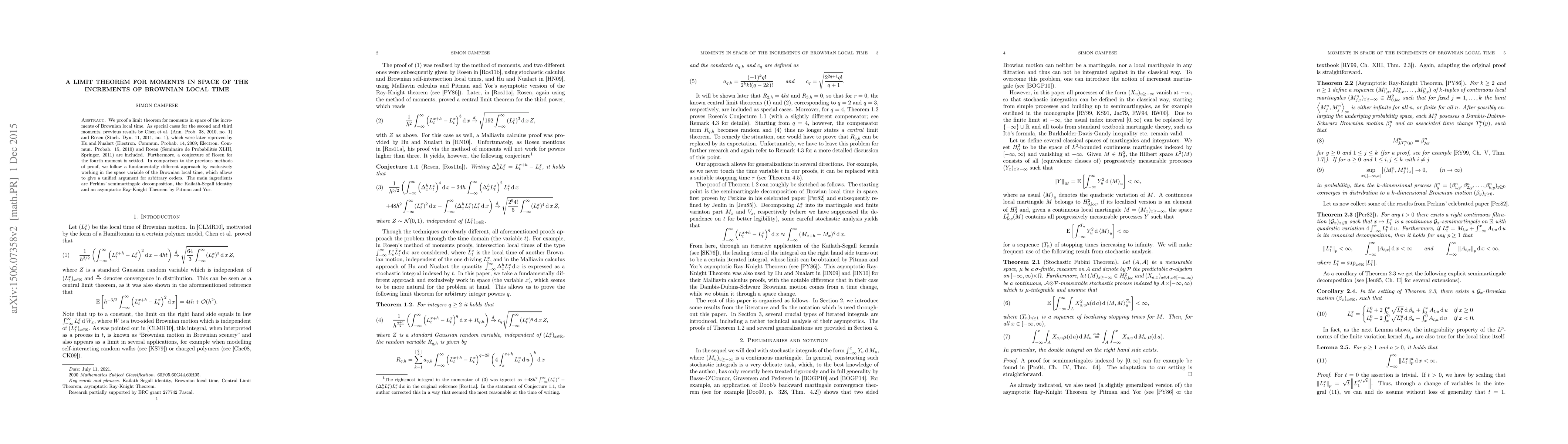 We proof a limit theorem for moments in space of the increments of Brownian local time. As special cases for the second and third moments, previous results by Chen et al. (Ann. Prob. 38, 2010, no. 1) and Rosen (Stoch. Dyn. 11, 2011, no. 1), which were later reproven by Hu and Nualart (Electron. Commun. Probab. 14, 2009; Electron. Commun. Probab. 15, 2010) and Rosen (S\'eminaire de Probabilit\'es XLIII, Springer, 2011) are included. Furthermore, a conjecture of Rosen for the fourth moment is settled. In comparison to the previous methods of proof, we follow a fundamentally different approach by exclusively working in the space variable of the Brownian local time, which allows to give a unified argument for arbitrary orders. The main ingredients are Perkins' semimartingale decomposition, the Kailath-Segall identity and an asymptotic Ray-Knight Theorem by Pitman and Yor.