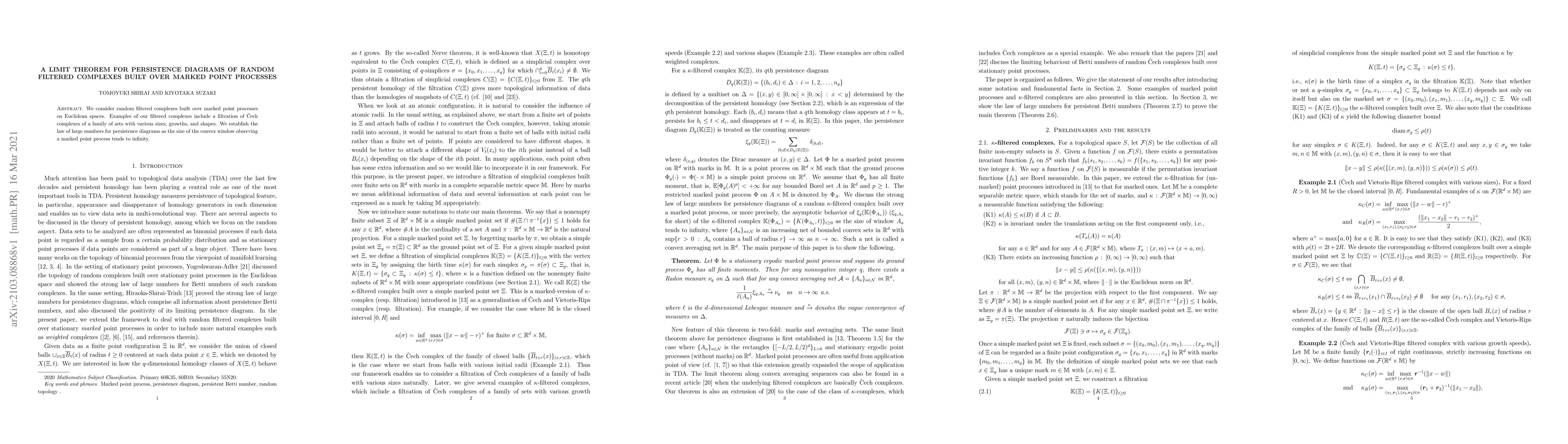 We consider random filtered complexes built over marked point processes on Euclidean spaces. Examples of our filtered complexes include a filtration of $\check{\textrm{C}}$ech complexes of a family of sets with various sizes, growths, and shapes. We establish the law of large numbers for persistence diagrams as the size of the convex window observing a marked point process tends to infinity.
