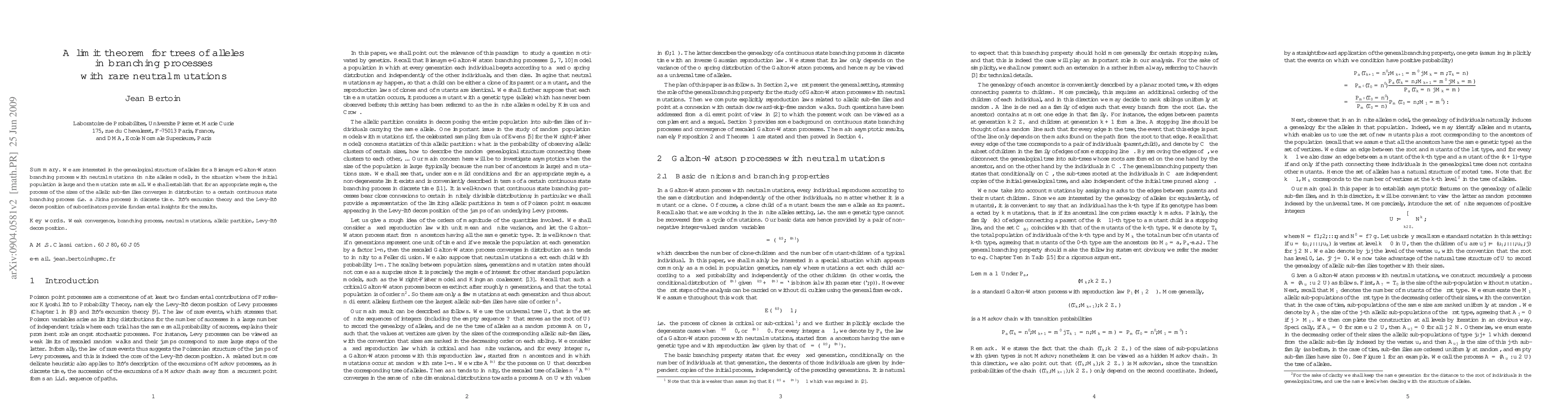 This paper investigates the genealogical structure of alleles in a branching process with rare neutral mutations, showing that under certain conditions, the sizes of allelic sub-families converge to a continuous state branching process. The study employs Itô's excursion theory and Lévy-Itô decomposition to derive these results.