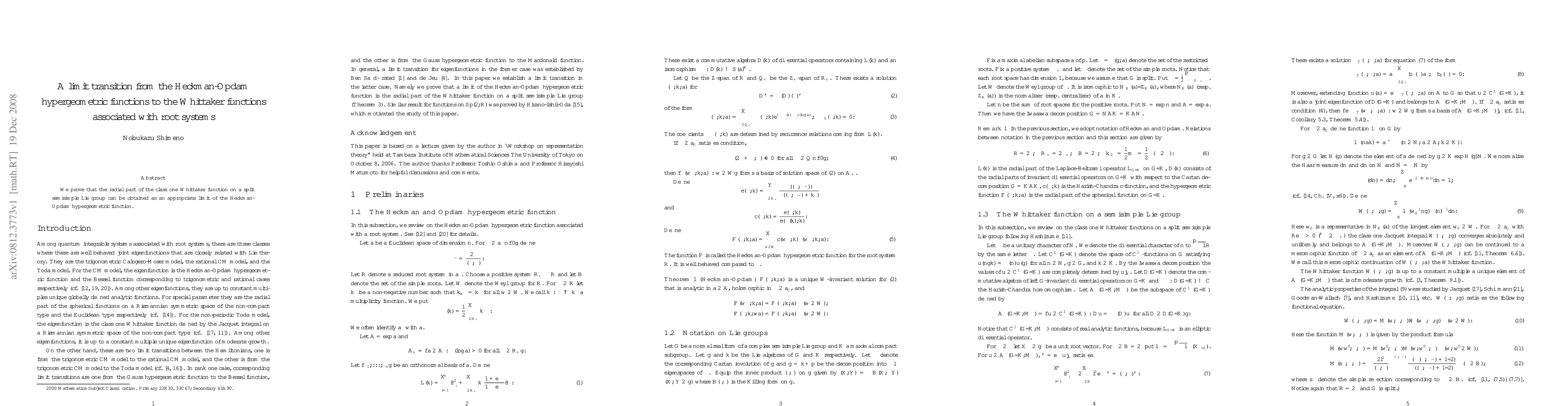 We prove that the radial part of the class one Whittaker function on a split semisimple Lie group can be obtained as an appropriate limit of the Heckman-Opdam hypergeometric function.