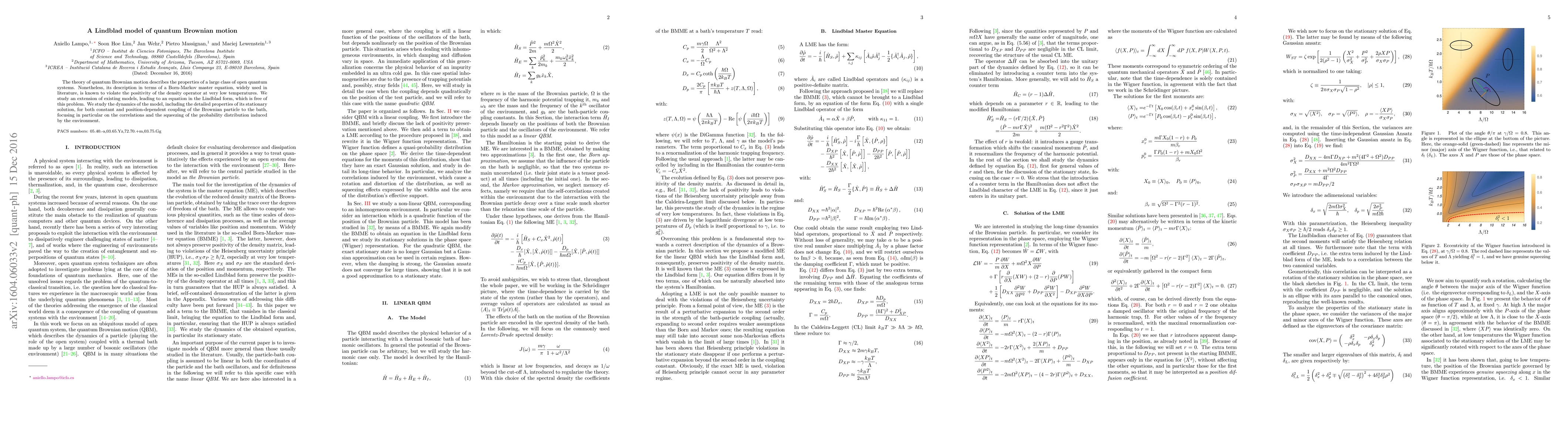 The theory of quantum Brownian motion describes the properties of a large class of open quantum systems. Nonetheless, its description in terms of a Born-Markov master equation, widely used in the literature, is known to violate the positivity of the density operator at very low temperatures. We study an extension of existing models, leading to an equation in the Lindblad form, which is free of this problem. We study the dynamics of the model, including the detailed properties of its stationary solution, for both constant and position-dependent coupling of the Brownian particle to the bath, focusing in particular on the correlations and the squeezing of the probability distribution induced by the environment