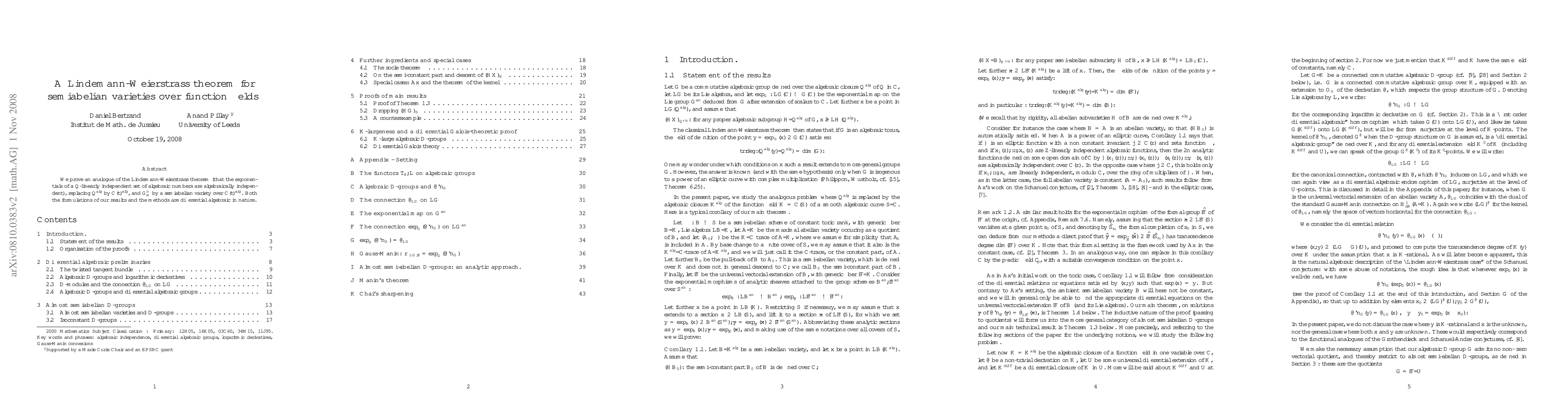 This paper proves an analogue of the Lindemann-Weierstrass theorem for semiabelian varieties over function fields, focusing on the algebraic independence of exponentials of Q-linearly independent algebraic numbers within commutative algebraic groups. The study addresses solutions to differential algebraic relations satisfied by the exponential map from the Lie algebra of these groups to the groups themselves.