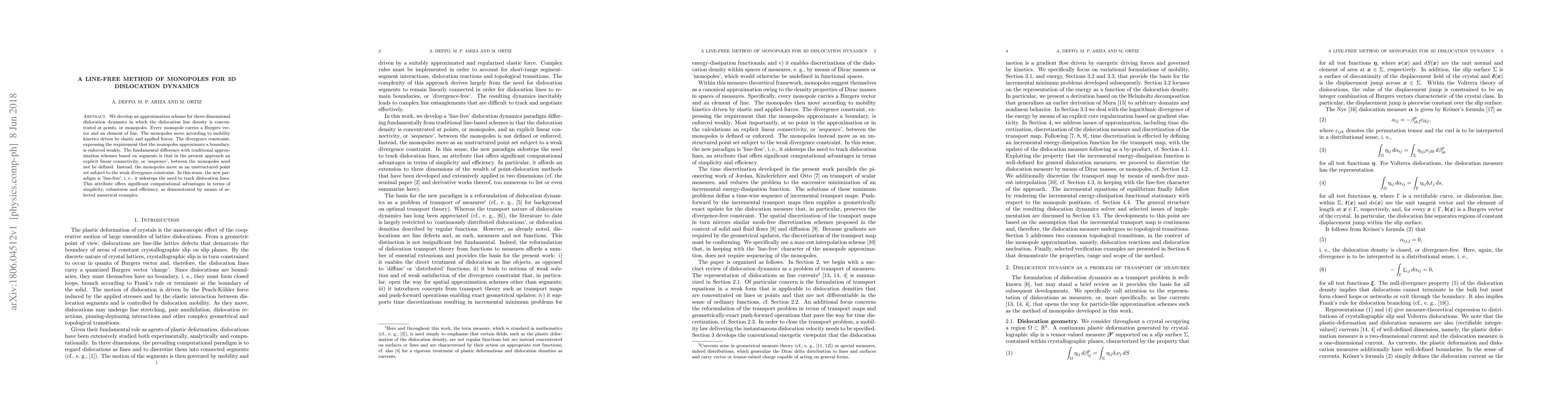 We develop an approximation scheme for three-dimensional dislocation dynamics in which the dislocation line density is concentrated at points, or monopoles. Every monopole carries a Burgers vector and an element of line. The monopoles move according to mobility kinetics driven by elastic and applied forces. The divergence constraint, expressing the requirement that the monopoles approximate a boundary, is enforced weakly. The fundamental difference with traditional approximation schemes based on segments is that in the present approach an explicit linear connectivity, or 'sequence', between the monopoles need not be defined. Instead, the monopoles move as an unstructured point set subject to the weak divergence constraint. In this sense, the new paradigm is 'line-free', i. e., it sidesteps the need to track dislocation lines. This attribute offers significant computational advantages in terms of simplicity, robustness and efficiency, as demonstrated by means of selected numerical examples.