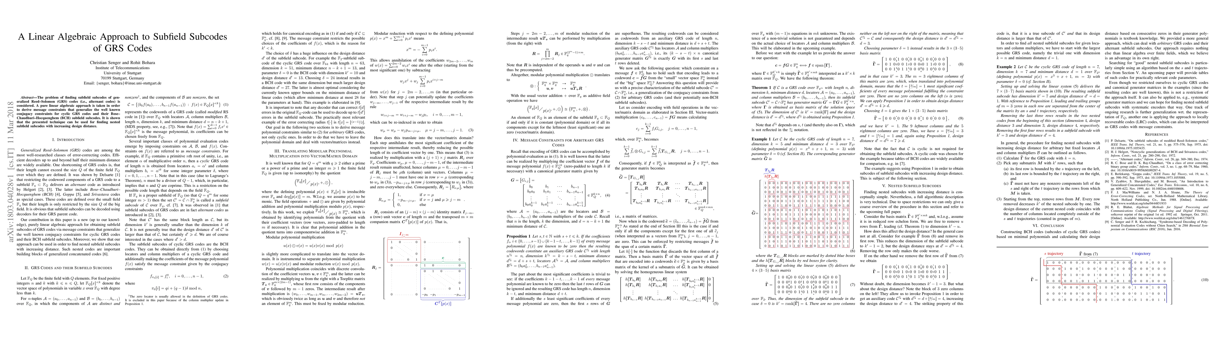 This paper presents a linear algebraic method for identifying subfield subcodes of generalized Reed-Solomon (GRS) codes, extending conjugacy constraints to nested subcodes and improving design distance. The technique generalizes existing approaches for cyclic GRS codes and their BCH subfield subcodes.