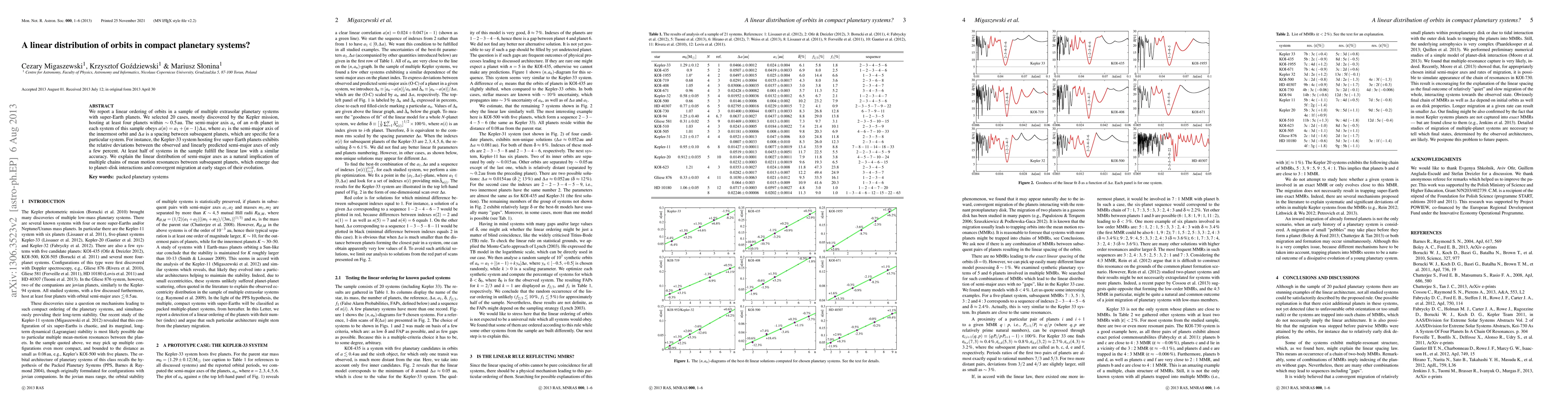 We report a linear ordering of orbits in a sample of multiple extrasolar planetary systems with super-Earth planets. We selected 20 cases, mostly discovered by the Kepler mission, hosting at least four planets within \sim 0.5 au. The semi-major axis a_n of an n-th planet in each system of this sample obeys a(n) = a_1 + (n-1) \Delta a, where a_1 is the semi-major axis of the innermost orbit and \Delta a is a spacing between subsequent planets, which are specific for a particular system. For instance, the Kepler-33 system hosting five super-Earth planets exhibits the relative deviations between the observed and linearly predicted semi-major axes of only a few percent. At least half of systems in the sample fulfill the linear law with a similar accuracy. We explain the linear distribution of semi-major axes as a natural implication of multiple chains of mean motion resonances between subsequent planets, which emerge due to planet--disk interactions and convergent migration at early stages of their evolution.