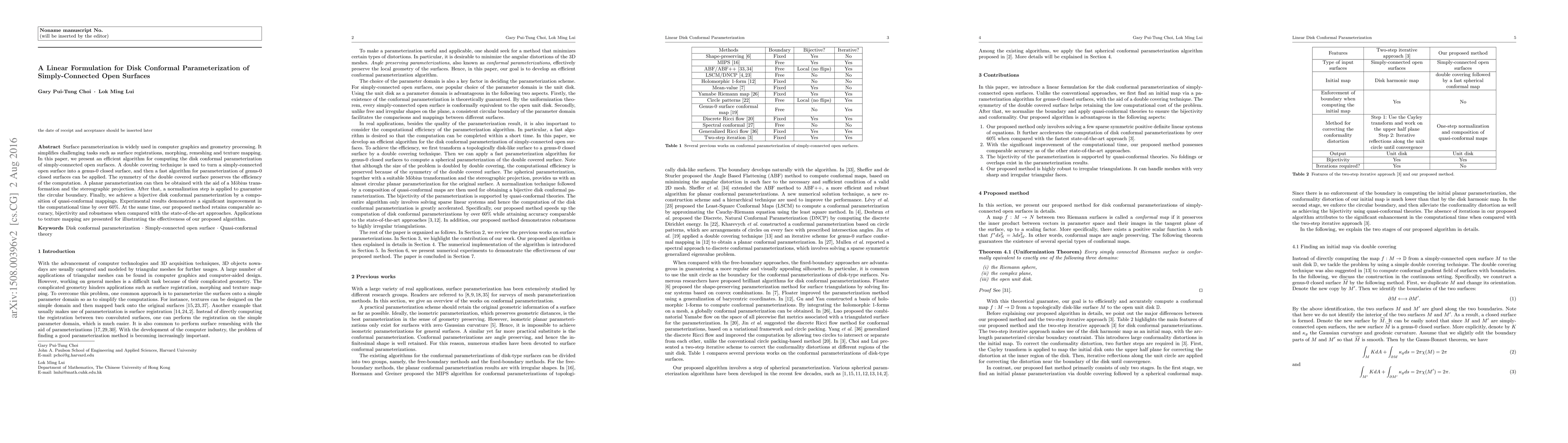 This paper proposes an efficient algorithm for computing disk conformal parameterization of simply-connected open surfaces, significantly improving computational time by over 60% while maintaining accuracy and robustness. The method uses double covering and Möbius transformation to achieve bijective parameterization.